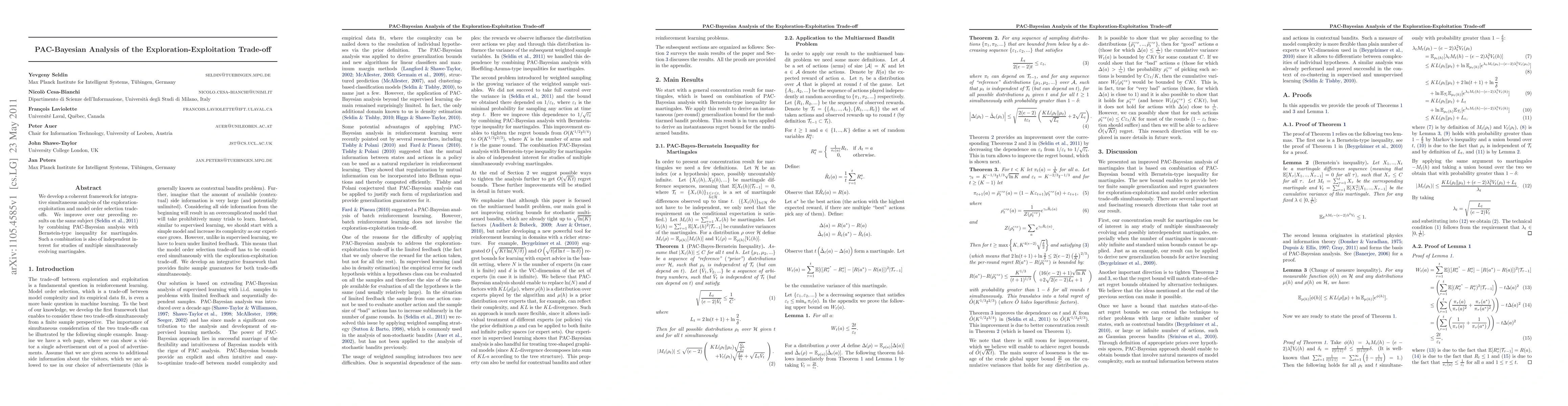 We develop a coherent framework for integrative simultaneous analysis of the exploration-exploitation and model order selection trade-offs. We improve over our preceding results on the same subject (Seldin et al., 2011) by combining PAC-Bayesian analysis with Bernstein-type inequality for martingales. Such a combination is also of independent interest for studies of multiple simultaneously evolving martingales.