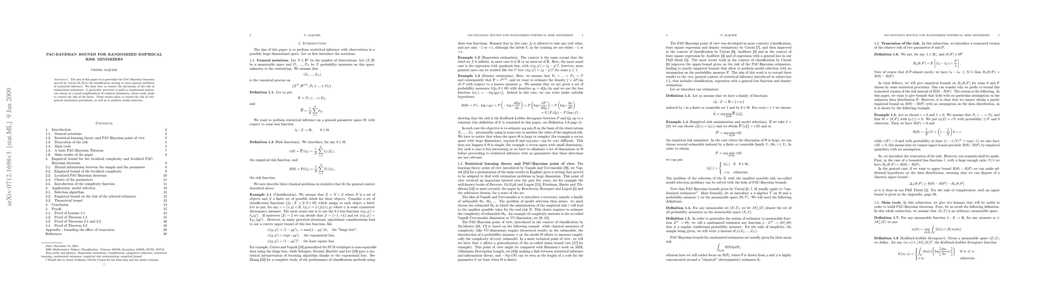 This paper introduces PAC-Bayesian bounds for randomized empirical risk minimizers, enabling control over estimation risks in various statistical inference problems. It also facilitates model selection and bounding of general estimation procedures.