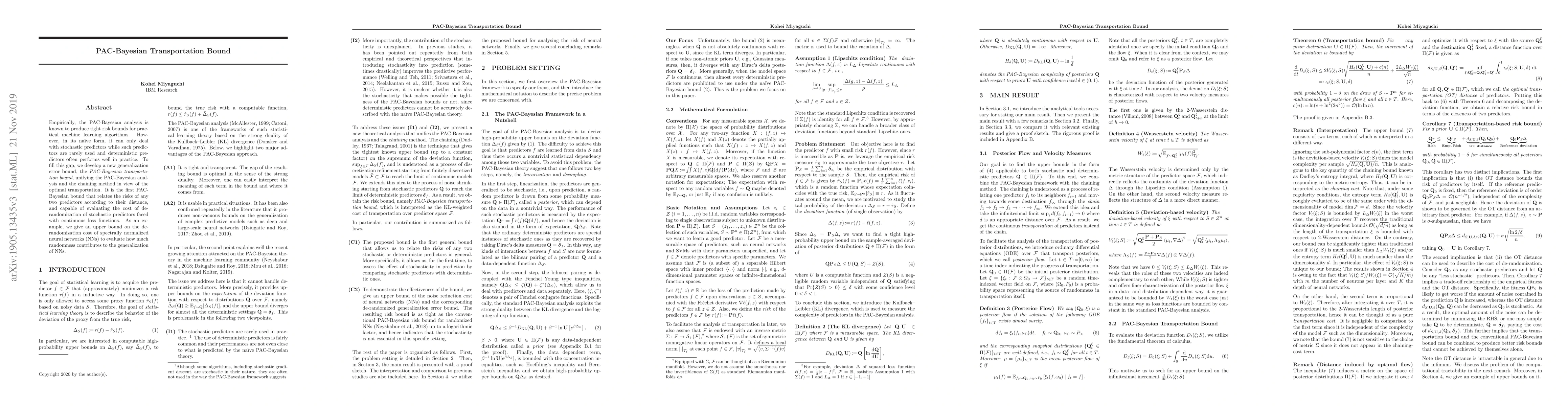 The research develops a new generalization error bound, the PAC-Bayesian transportation bound, unifying the PAC-Bayesian analysis and the chaining method in view of optimal transportation.