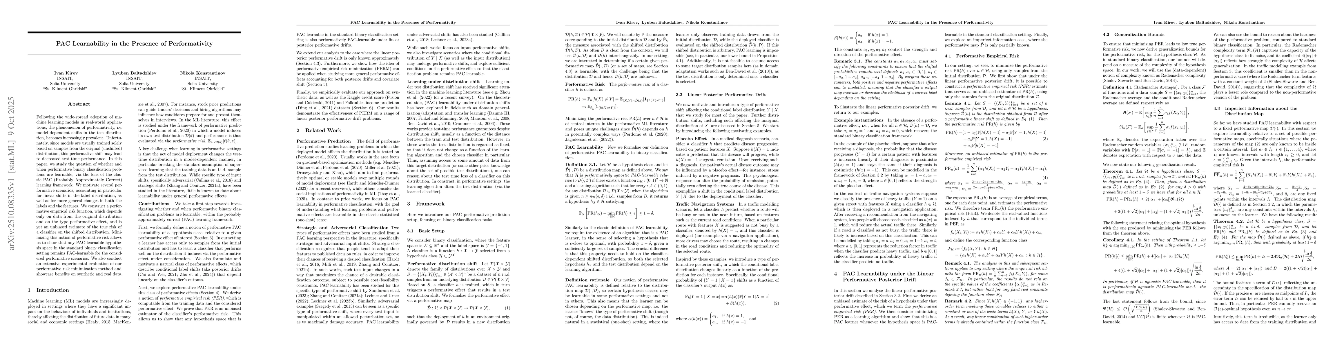 Formalized the concept of performatively agnostic PAC-learnability, derived bounds on excess risk under distributional shifts, and provided a unified framework connecting statistical learning theory with performative causality