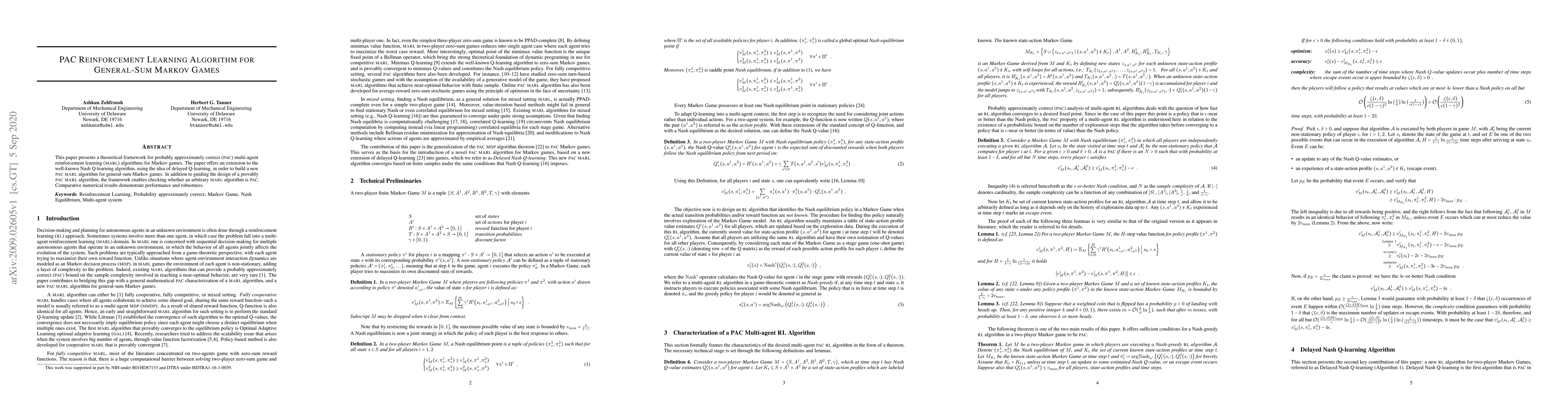This paper introduces a PAC framework for multi-agent reinforcement learning in general-sum Markov games, extending Nash Q-learning with delayed Q-learning. It provides a robust algorithm and a method to verify PAC properties, supported by comparative numerical results.