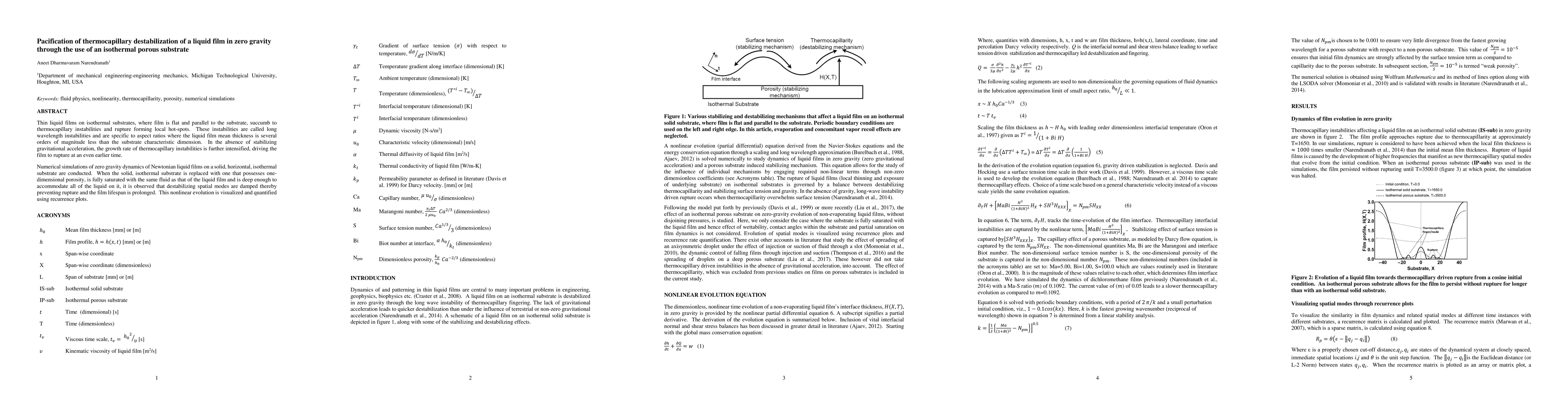 The paper presents a nonlinear evolution equation for liquid films in zero gravity on porous substrates, enabling the study of individual stabilizing and destabilizing mechanisms through dimensionless coefficients.
