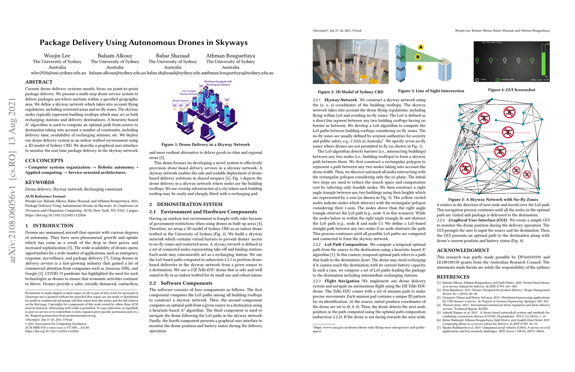 A drone delivery system was developed to deliver packages anywhere within a specified area using a skyway network that considers flying regulations. An A"* algorithm was used to compute an optimal path for package delivery in real-time.