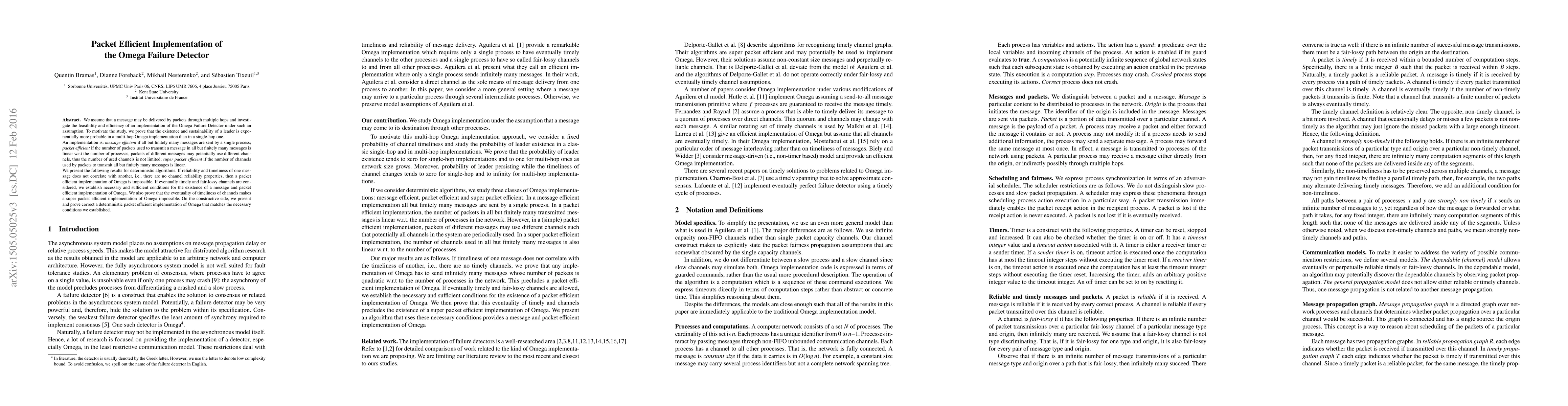 This paper explores the feasibility of implementing the Omega Failure Detector in a multi-hop packet-based communication system, proving that a multi-hop implementation is exponentially more likely to sustain a leader than a single-hop one. It establishes conditions for packet and message efficiency, showing that a packet efficient implementation is impossible without specific channel properties, but presents a deterministic solution that meets the necessary conditions.