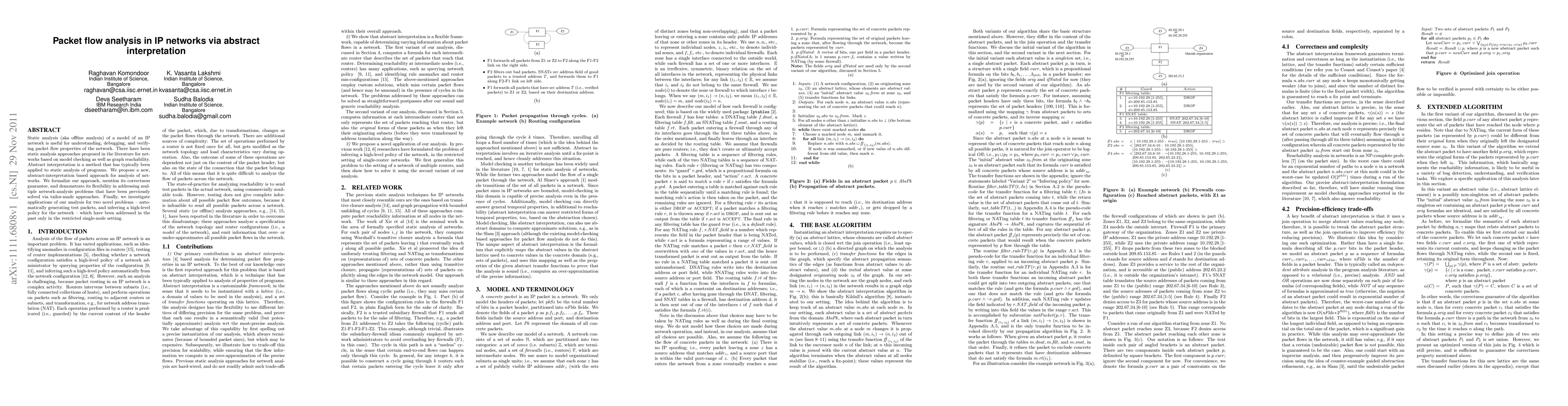 This paper proposes an abstract-interpretation based approach for static analysis of IP networks, demonstrating its correctness and flexibility in solving various network-analysis problems previously addressed with tailor-made methods. The approach also extends to infer high-level network policies, previously limited to single-router settings.