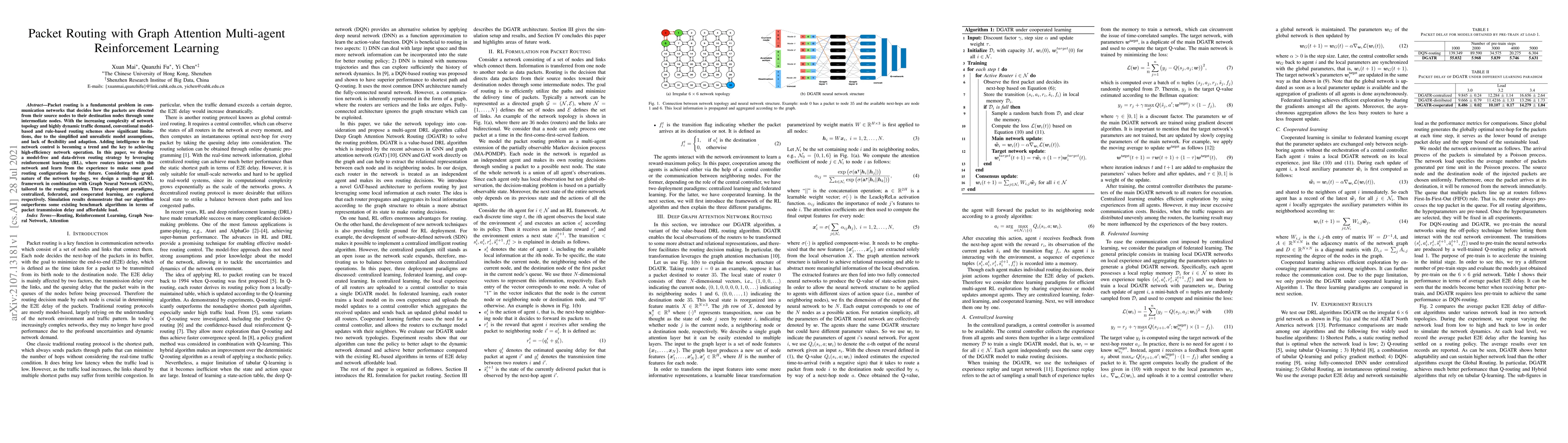 Packet routing is a fundamental problem in communication networks that decides how the packets are directed from their source nodes to their destination nodes through some intermediate nodes. With the increasing complexity of network topology and highly dynamic traffic demand, conventional model-based and rule-based routing schemes show significant limitations, due to the simplified and unrealistic model assumptions, and lack of flexibility and adaption. Adding intelligence to the network control is becoming a trend and the key to achieving high-efficiency network operation. In this paper, we develop a model-free and data-driven routing strategy by leveraging reinforcement learning (RL), where routers interact with the network and learn from the experience to make some good routing configurations for the future. Considering the graph nature of the network topology, we design a multi-agent RL framework in combination with Graph Neural Network (GNN), tailored to the routing problem. Three deployment paradigms, centralized, federated, and cooperated learning, are explored respectively. Simulation results demonstrate that our algorithm outperforms some existing benchmark algorithms in terms of packet transmission delay and affordable load.