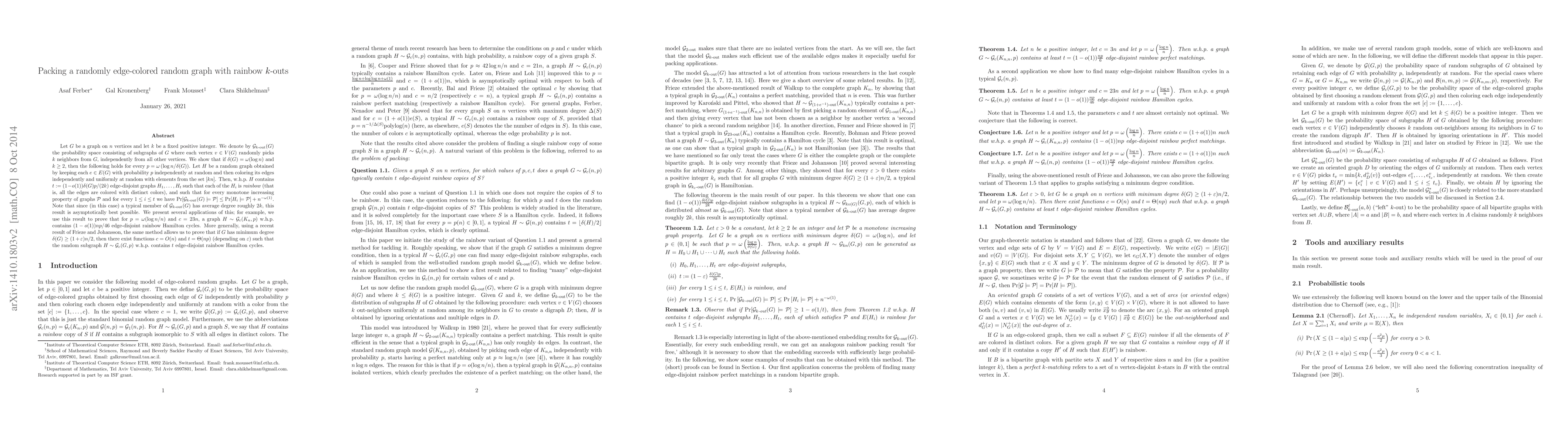 Let $G$ be a graph on $n$ vertices and let $k$ be a fixed positive integer. We denote by $\mathcal G_{\text{$k$-out}}(G)$ the probability space consisting of subgraphs of $G$ where each vertex $v\in V(G)$ randomly picks $k$ neighbors from $G$, independently from all other vertices. We show that if $\delta(G)=\omega(\log n)$ and $k\geq 2$, then the following holds for every $p=\omega(\log n/\delta(G))$. Let $H$ be a random graph obtained by keeping each $e\in E(G)$ with probability $p$ independently at random and then coloring its edges independently and uniformly at random with elements from the set $[kn]$. Then, w.h.p. $H$ contains $t:=(1-o(1))\delta(G)p/(2k)$ edge-disjoint graphs $H_1,...,H_t$ such that each of the $H_i$ is \emph{rainbow} (that is, all the edges are colored with distinct colors), and such that for every monotone increasing property of graphs $\mathcal P$ and for every $1\leq i\leq t$ we have $\Pr[\mathcal G_{\text{$k$-out}}(G)\models \mathcal P]\leq \Pr[H_i\models \mathcal P]+n^{-\omega(1)}$. Note that since (in this case) a typical member of $\mathcal G_{\text{$k$-out}}(G)$ has average degree roughly $2k$, this result is asymptotically best possible. We present several applications of this; for example, we use this result to prove that for $p=\omega(\log n/n)$ and $c=23n$, a graph $H\sim \mathcal G_{c}(K_n,p)$ w.h.p. contains $(1-o(1))np/46$ edge-disjoint rainbow Hamilton cycles. More generally, using a recent result of Frieze and Johansson, the same method allows us to prove that if $G$ has minimum degree $\delta(G)\geq (1+\varepsilon)n/2$, then there exist functions $c=O(n)$ and $t=\Theta(np)$ (depending on $\varepsilon$) such that the random subgraph $H\sim \mathcal G_{c}(G,p)$ w.h.p. contains $t$ edge-disjoint rainbow Hamilton cycles.