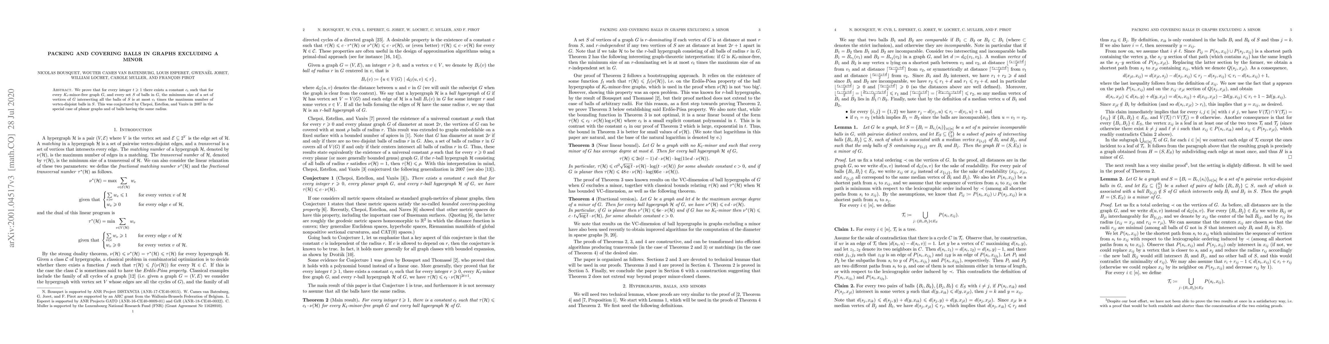 We prove that for every integer $t\ge 1$ there exists a constant $c_t$ such that for every $K_t$-minor-free graph $G$, and every set $S$ of balls in $G$, the minimum size of a set of vertices of $G$ intersecting all the balls of $S$ is at most $c_t$ times the maximum number of vertex-disjoint balls in $S$. This was conjectured by Chepoi, Estellon, and Vax\`es in 2007 in the special case of planar graphs and of balls having the same radius.