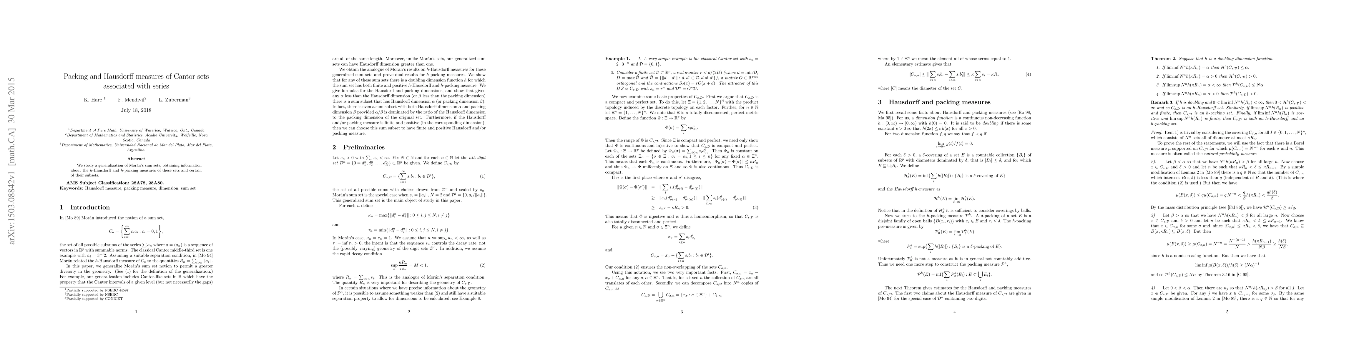 We study a generalization of Mor\'an's sum sets, obtaining information about the $h$-Hausdorff and $h$-packing measures of these sets and certain of their subsets.