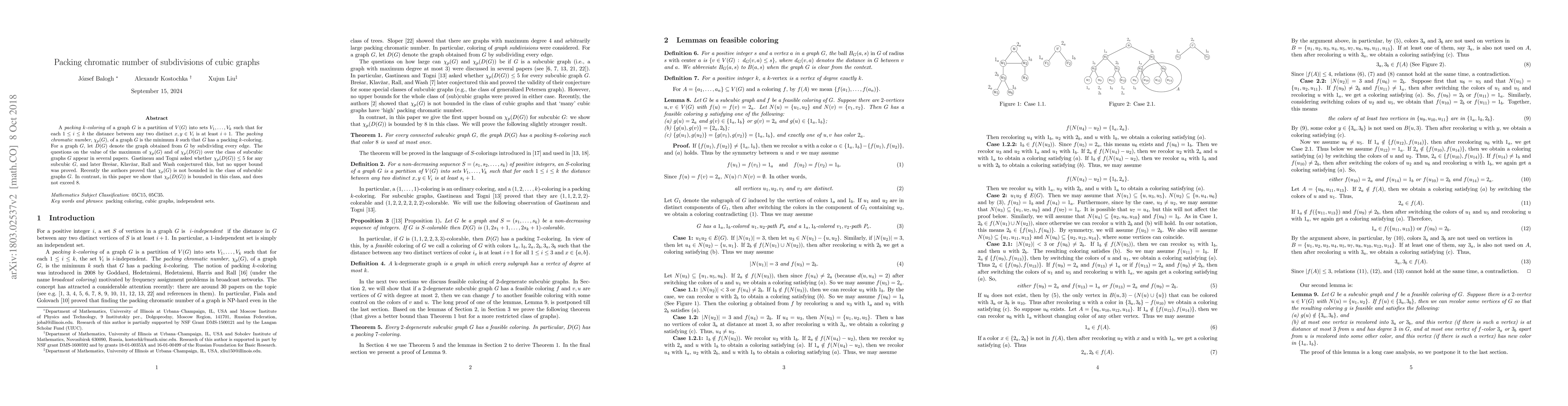 This paper investigates the packing chromatic number $\chi_p(G)$ for subcubic graphs $G$ and their subdivisions $D(G)$. It proves that while $\chi_p(G)$ is unbounded, $\chi_p(D(G))$ is bounded and does not exceed $8$ for any subcubic graph.