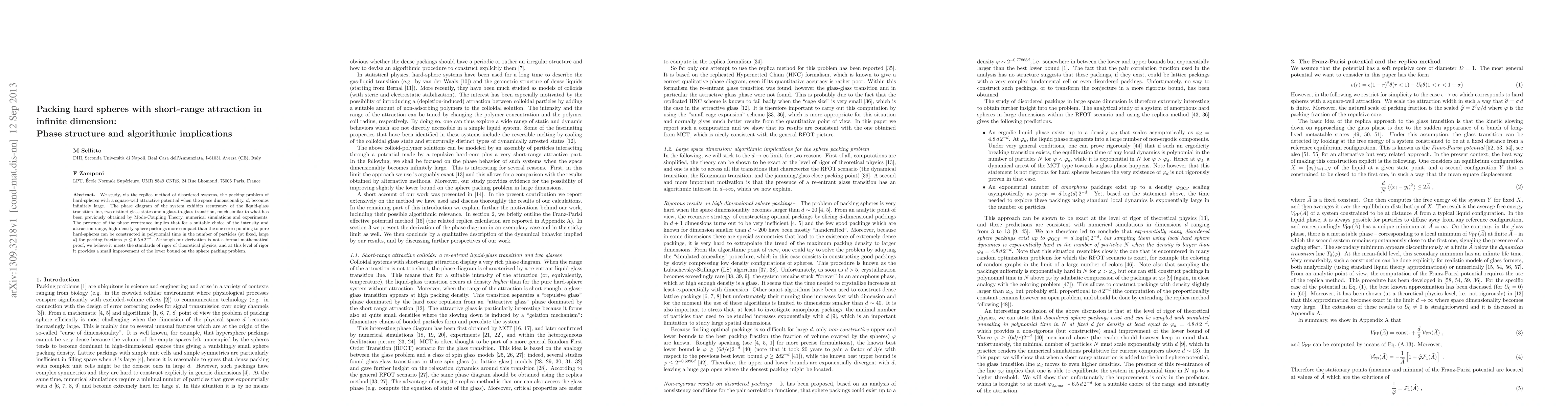 Researchers have discovered a way to pack hard spheres with short-range attraction in infinite dimension, creating more compact packings than pure hard-spheres, with potential implications for sphere packing problems.