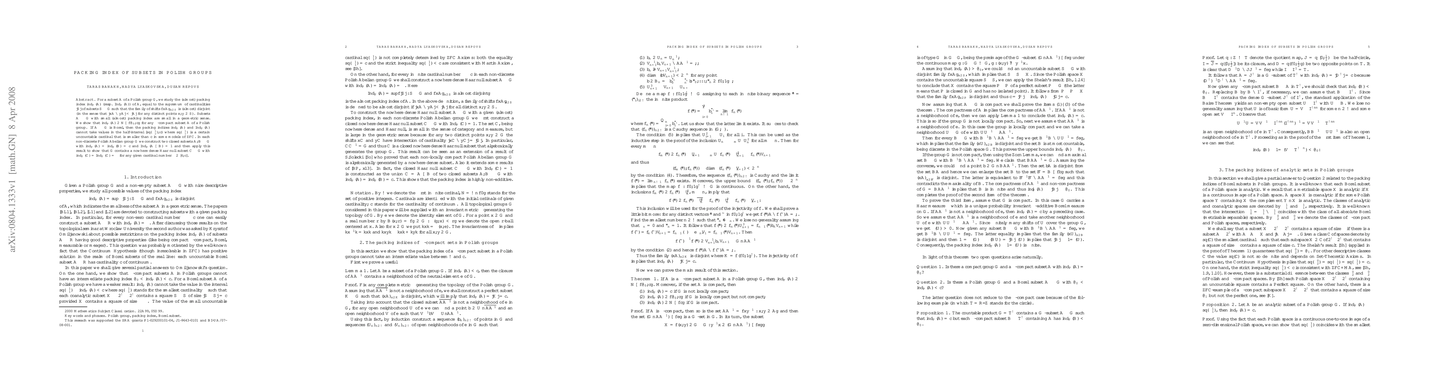 For a subset $A$ of a Polish group $G$, we study the (almost) packing index $\ind_P(A)$ (resp. $\Ind_P(A)$) of $A$, equal to the supremum of cardinalities $|S|$ of subsets $S\subset G$ such that the family of shifts $\{xA\}_{x\in S}$ is (almost) disjoint (in the sense that $|xA\cap yA|<|A|$ for any distinct points $x,y\in S$). Subsets $A\subset G$ with small (almost) packing index are small in a geometric sense. We show that $\ind_P(A)\in \IN\cup\{\aleph_0,\cc\}$ for any $\sigma$-compact subset $A$ of a Polish group. If $A\subset G$ is Borel, then the packing indices $\ind_P(A)$ and $\Ind_P(A)$ cannot take values in the half-interval $[\sq(\Pi^1_1),\cc)$ where $\sq(\Pi^1_1)$ is a certain uncountable cardinal that is smaller than $\cc$ in some models of ZFC. In each non-discrete Polish Abelian group $G$ we construct two closed subsets $A,B\subset G$ with $\ind_P(A)=\ind_P(B)=\cc$ and $\Ind_P(A\cup B)=1$ and then apply this result to show that $G$ contains a nowhere dense Haar null subset $C\subset G$ with $\ind_P(C)=\Ind_P(C)=\kappa$ for any given cardinal number $\kappa\in[4,\cc]$.