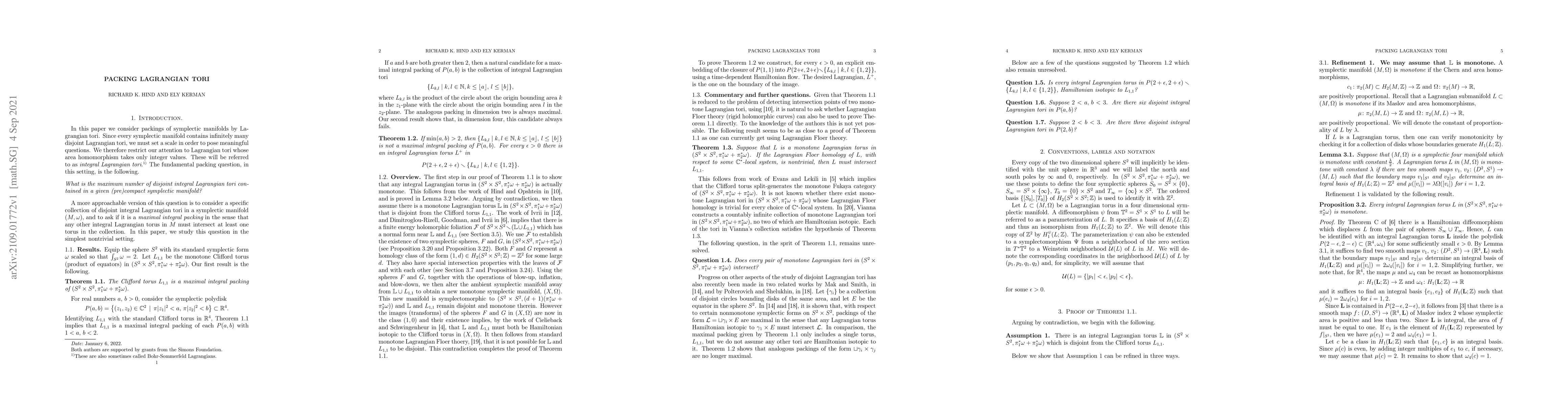Summary: This paper proves that the Clifford torus in $S^2 \times S^2$ is the maximal integral Lagrangian packing, while also demonstrating the existence of additional integral Lagrangian tori in certain symplectic polydisks.