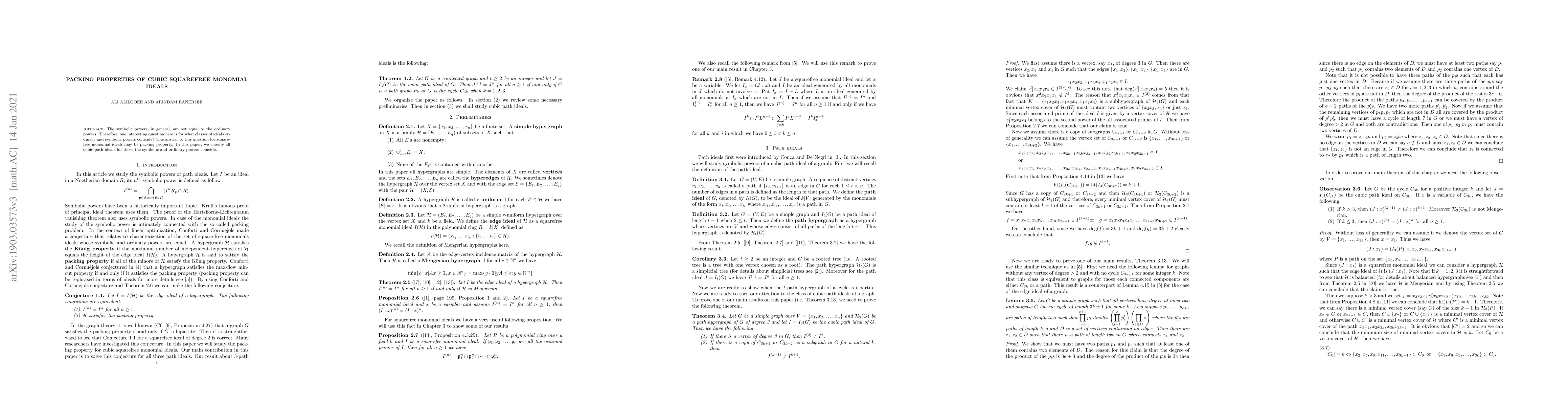 This paper investigates when the symbolic and ordinary powers of squarefree monomial ideals coincide, focusing on cubic path ideals. It classifies all cubic path ideals for which these powers are equal, identifying the packing property as a key feature.