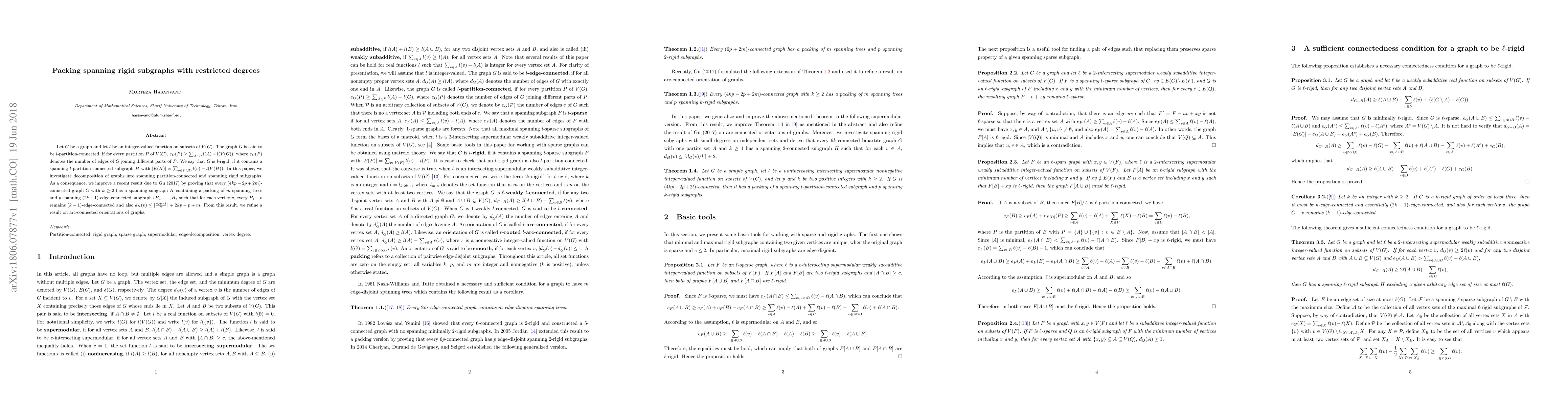 This paper explores the decomposition of graphs into spanning partition-connected and spanning rigid subgraphs, improving a prior result by showing a $(4kp-2p+2m)$-connected graph $G$ can be spanned by $m$ trees and $p$ $(2k-1)$-edge-connected subgraphs while maintaining specific connectivity and degree constraints.