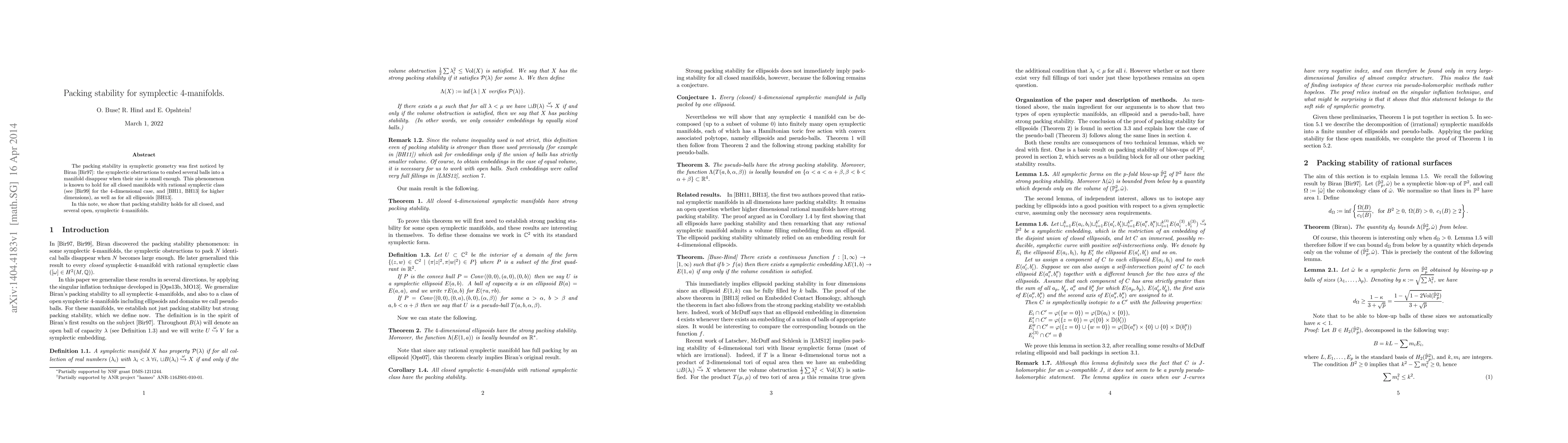 The paper introduces a novel method for decomposing symplectic 4-manifolds into standard pieces (ellipsoids and pseudo-balls) using singular polarizations, which facilitates the proof of packing stability.