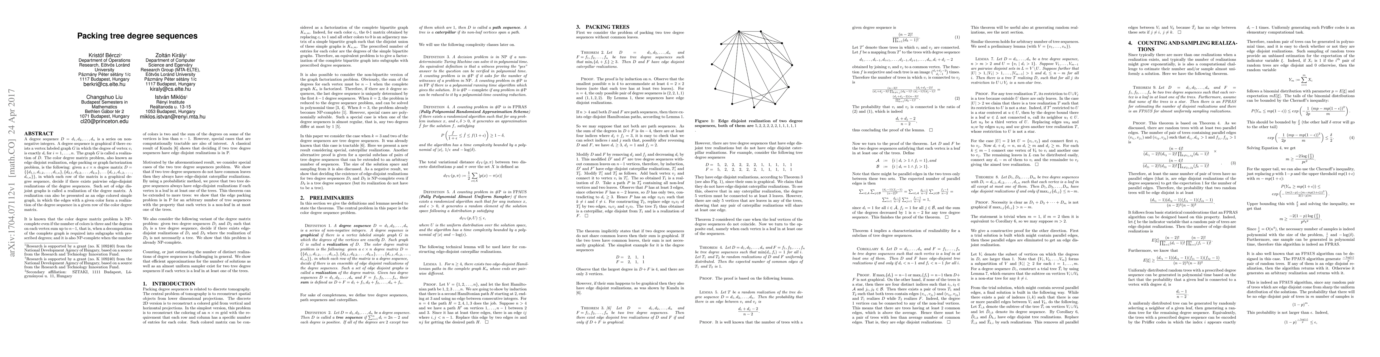 This paper explores the packing of tree degree sequences, proving that two such sequences without common leaves always have edge-disjoint caterpillar realizations. It also demonstrates that if each vertex is a leaf in at least one tree, edge-disjoint realizations are guaranteed, extending this to any number of trees under certain conditions. The study also addresses the NP-completeness of a variant degree matrix problem and provides efficient approximation methods for counting realizations of two tree degree sequences.