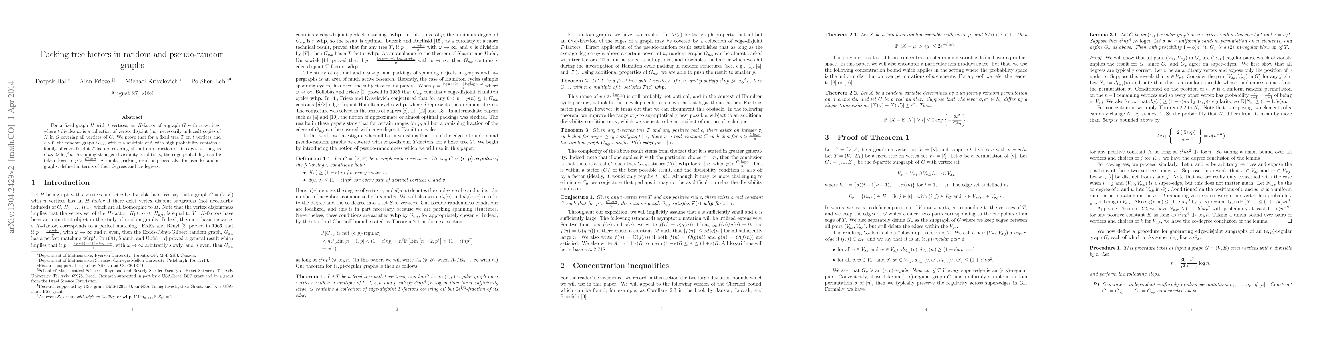 For a fixed graph H with t vertices, an H-factor of a graph G with n vertices, where t divides n, is a collection of vertex disjoint (not necessarily induced) copies of H in G covering all vertices of G. We prove that for a fixed tree T on t vertices and \epsilon > 0, the random graph G_{n,p}, with n a multiple of t, with high probability contains a family of edge-disjoint T-factors covering all but an \epsilon-fraction of its edges, as long as \epsilon^4 n p >> (log n)^2. Assuming stronger divisibility conditions, the edge probability can be taken down to p > (C log n)/n. A similar packing result is proved also for pseudo-random graphs, defined in terms of their degrees and co-degrees.