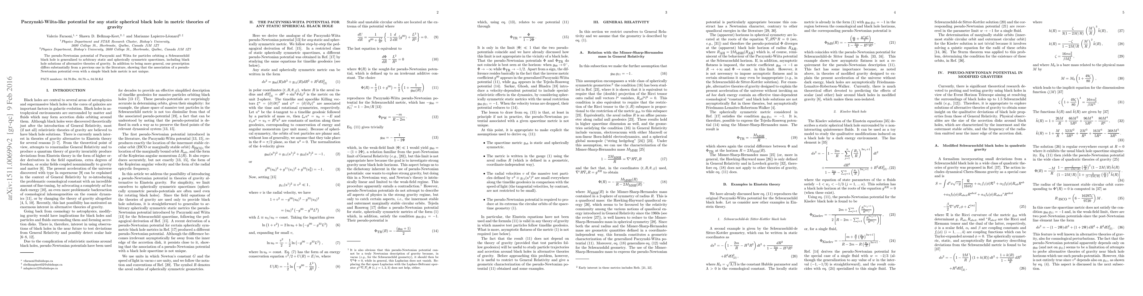 Researchers generalized Paczynski-Wiita's potential to arbitrary static spherical black holes in metric theories of gravity, revealing that the association with a simple black hole metric is not unique.