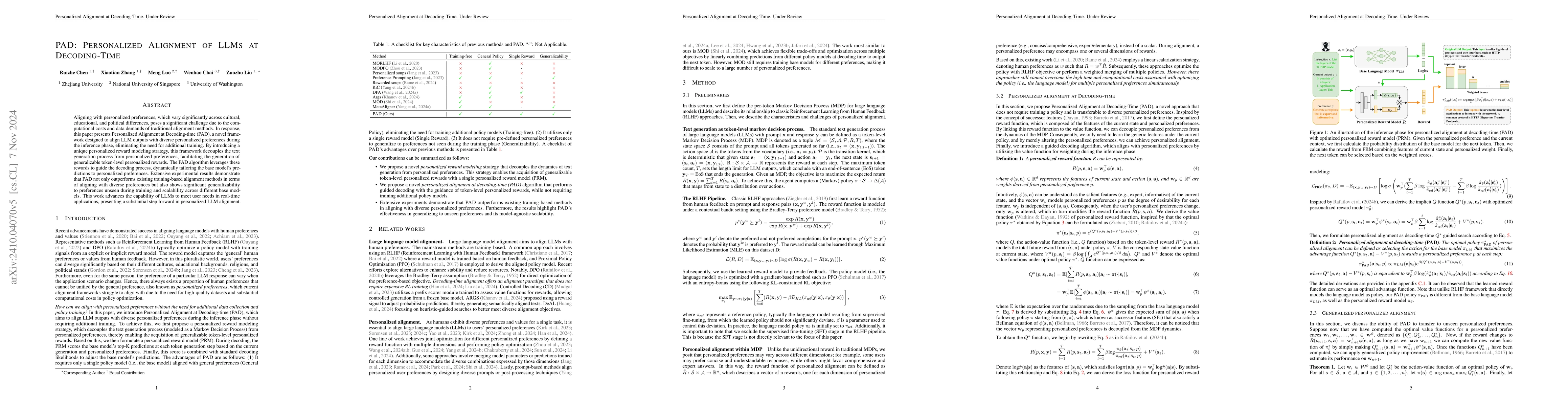 This paper introduces Personalized Alignment at Decoding-time (PAD), a framework for dynamically aligning large language model (LLM) outputs with diverse personalized preferences during inference, without additional training. PAD leverages token-level personalized rewards to guide decoding, demonstrating superior performance and scalability compared to training-based methods.