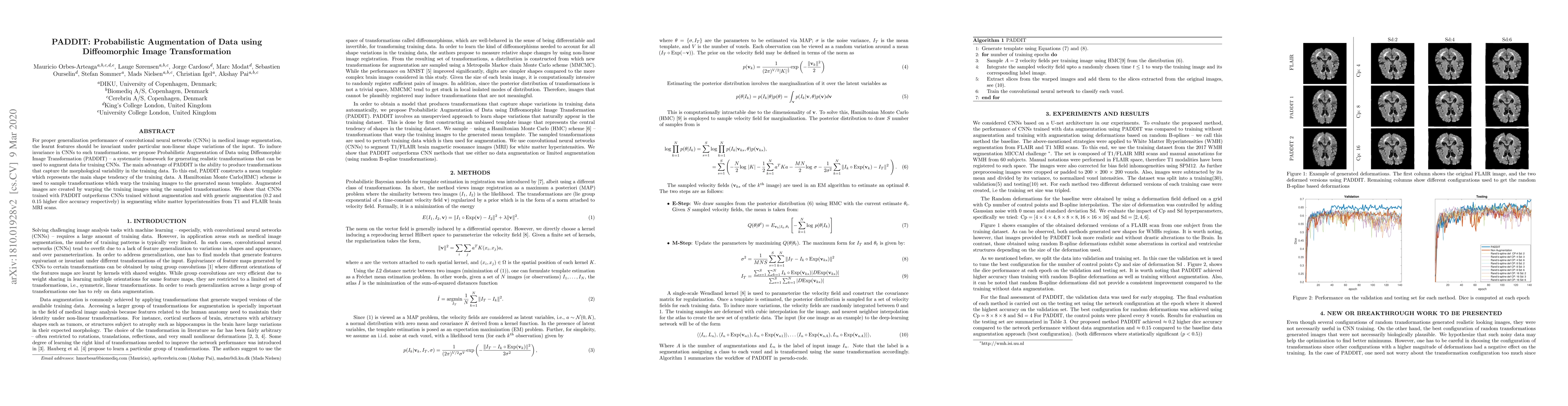 PADDIT is a framework for generating realistic, diffeomorphic image transformations to augment data for training CNNs, enhancing their invariance to non-linear shape variations. Experiments show that CNNs trained with PADDIT outperform those trained without or with generic augmentation in segmenting white matter hyperintensities from brain MRI scans.