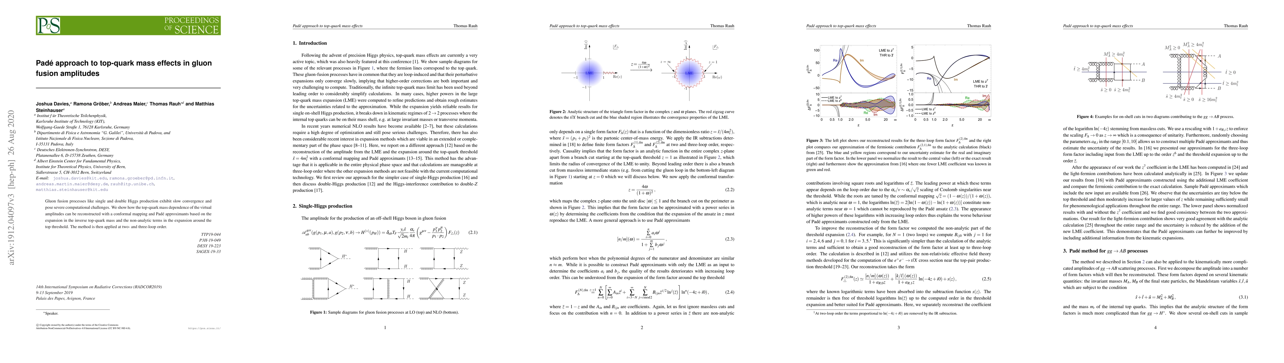 This paper proposes a method using conformal mapping and Padé approximants to reconstruct top-quark mass effects in gluon fusion amplitudes for Higgs production, addressing slow convergence and computational challenges at two- and three-loop order. The approach leverages expansions in the inverse top-quark mass and non-analytic terms.