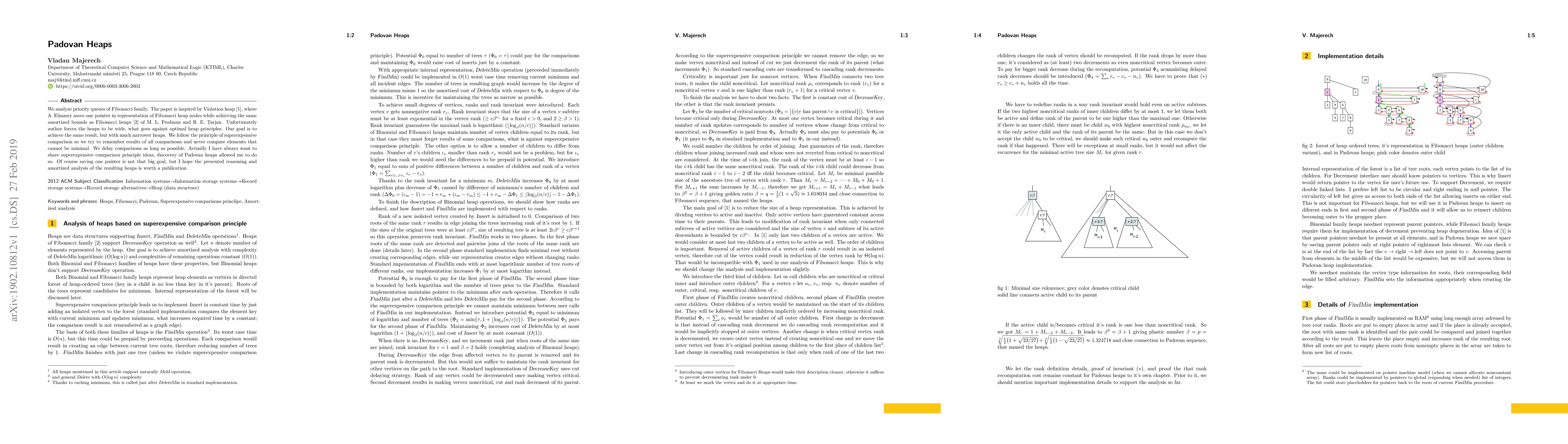 We analyze priority queues of Fibonacci family. The paper is inspired by Violation heap [1], where A. Elmasry saves one pointer in representation of Fibonacci heap nodes while achieving the same amortized bounds as Fibonacci heaps [2] of M. L. Fredman and R. E. Tarjan. Unfortunately author forces the heaps to be wide, what goes against optimal heap principles. Our goal is to achieve the same result, but with much narrower heaps. We follow the principle of superexpensive comparison so we try to remember results of all comparisons and never compare elements that cannot be minimal. We delay comparisons as long as possible. Actually I have always want to share superexpensive comparison principle ideas, discovery of Padovan heaps allowed me to do so. Of course saving one pointer is not that big goal, but I hope the presented reasoning and amortized analysis of the resulting heaps is worth a publication.