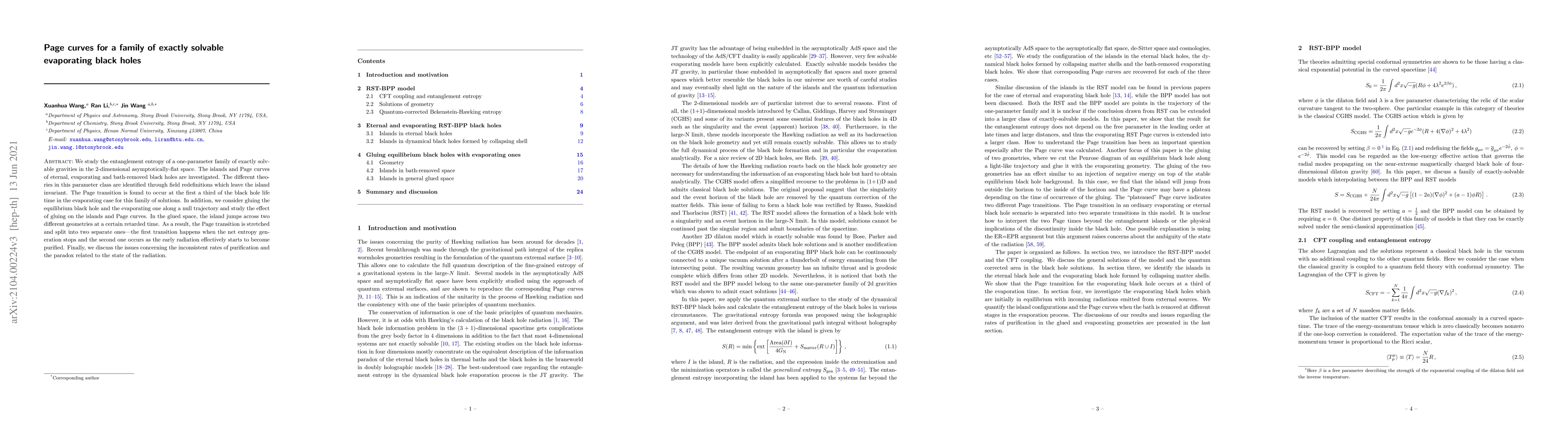 This paper investigates the entanglement entropy and Page curves for a family of exactly solvable evaporating black holes in 2-dimensional asymptotically-flat space, finding the Page transition occurs at a third of the black hole's lifetime. It also explores the effects of gluing equilibrium and evaporating black holes, resulting in a split Page transition and discusses inconsistencies in purification rates and related paradoxes.