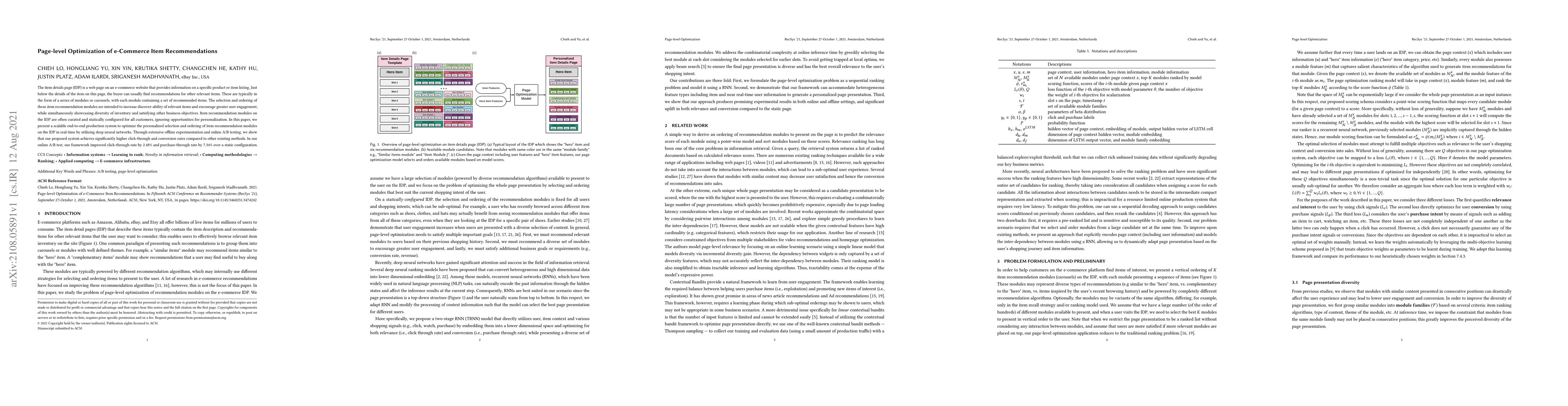 A scalable system using deep neural networks optimizes item recommendations on e-commerce websites, improving click-through and conversion rates by 2.48% and 7.34%, respectively.