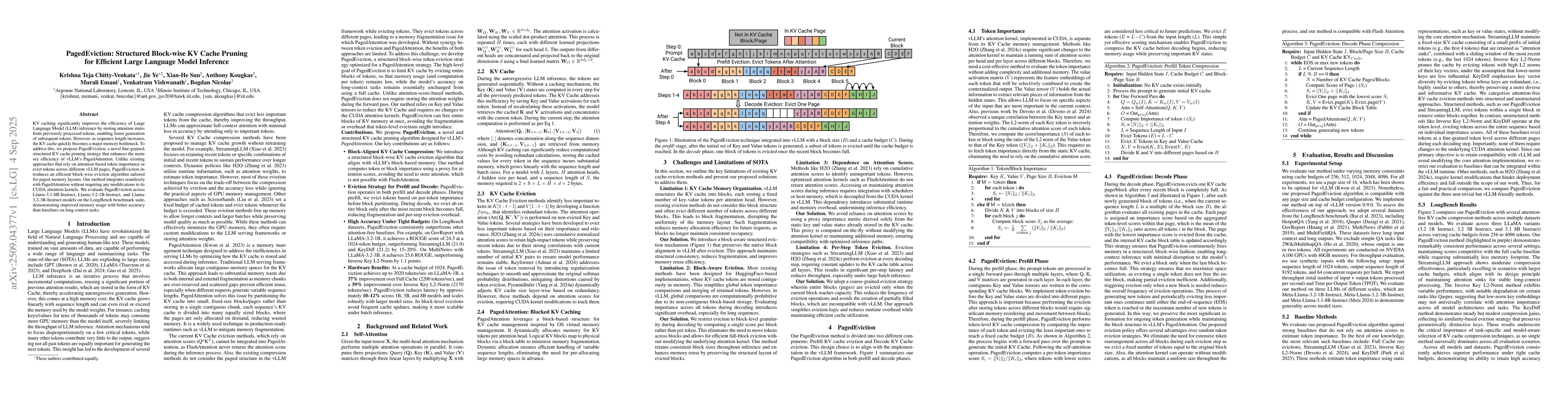 KV caching significantly improves the efficiency of Large Language Model (LLM) inference by storing attention states from previously processed tokens, enabling faster generation of subsequent tokens. However, as sequence length increases, the KV cache quickly becomes a major memory bottleneck. To address this, we propose PagedEviction, a novel fine-grained, structured KV cache pruning strategy that enhances the memory efficiency of vLLM's PagedAttention. Unlike existing approaches that rely on attention-based token importance or evict tokens across different vLLM pages, PagedEviction introduces an efficient block-wise eviction algorithm tailored for paged memory layouts. Our method integrates seamlessly with PagedAttention without requiring any modifications to its CUDA attention kernels. We evaluate PagedEviction across Llama-3.1-8B-Instruct, Llama-3.2-1B-Instruct, and Llama-3.2-3B-Instruct models on the LongBench benchmark suite, demonstrating improved memory usage with better accuracy than baselines on long context tasks.