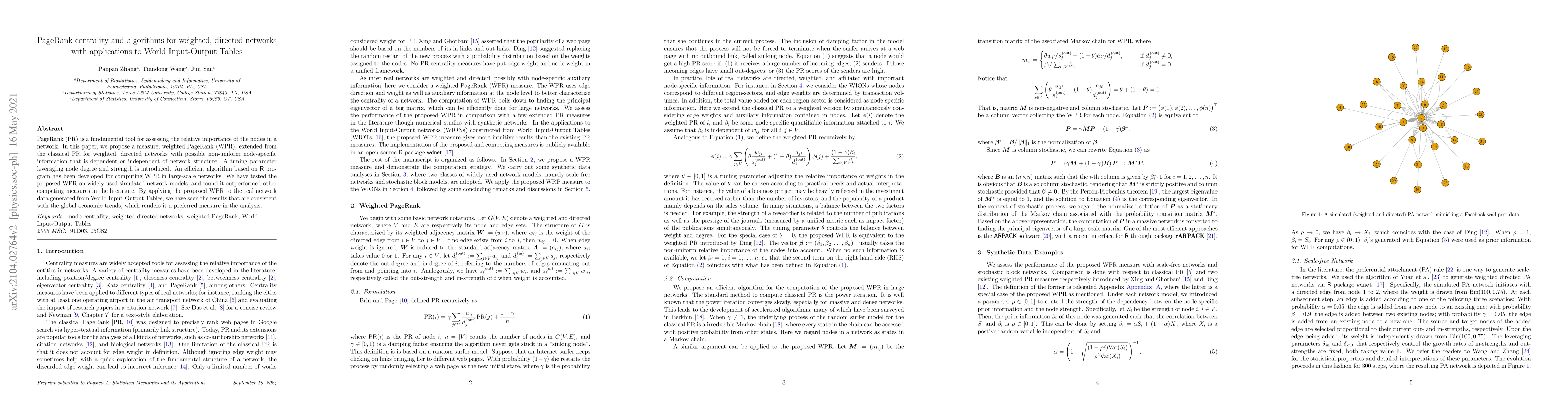 Researchers developed a new measure called weighted PageRank to assess importance in large-scale networks, including World Input-Output Tables, outperforming existing methods in accuracy.