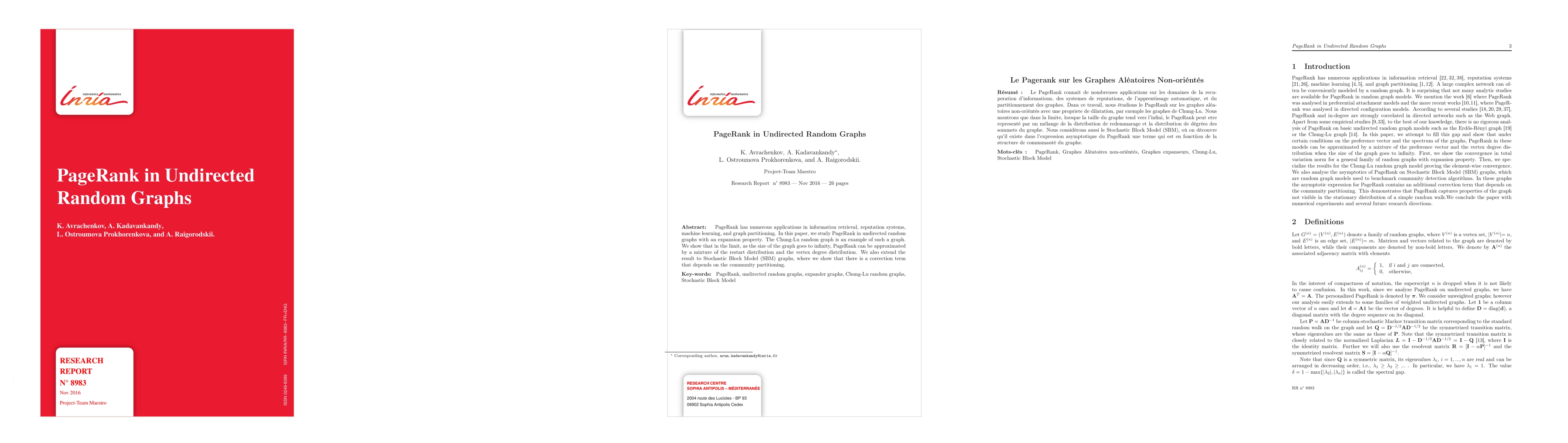 The paper provides a theoretical framework for approximating PageRank in undirected random graphs with expansion property, including an asymptotic expression for SBM graphs.