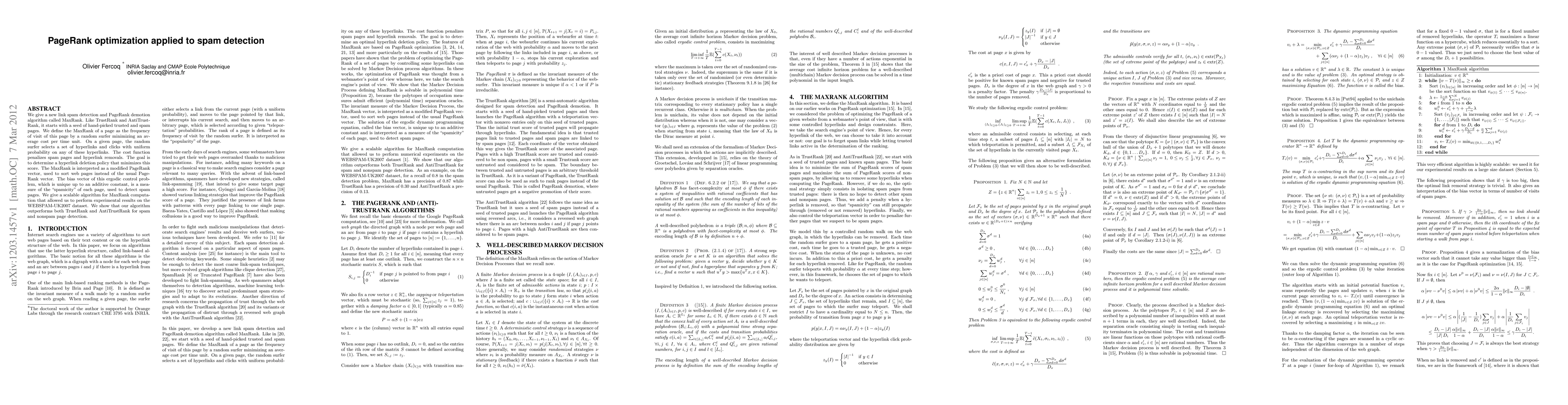 A new algorithm called MaxRank is introduced for spam detection, which optimizes PageRank to minimize cost per time unit, improving performance over existing algorithms on the WEBSPAM-UK2007 dataset.