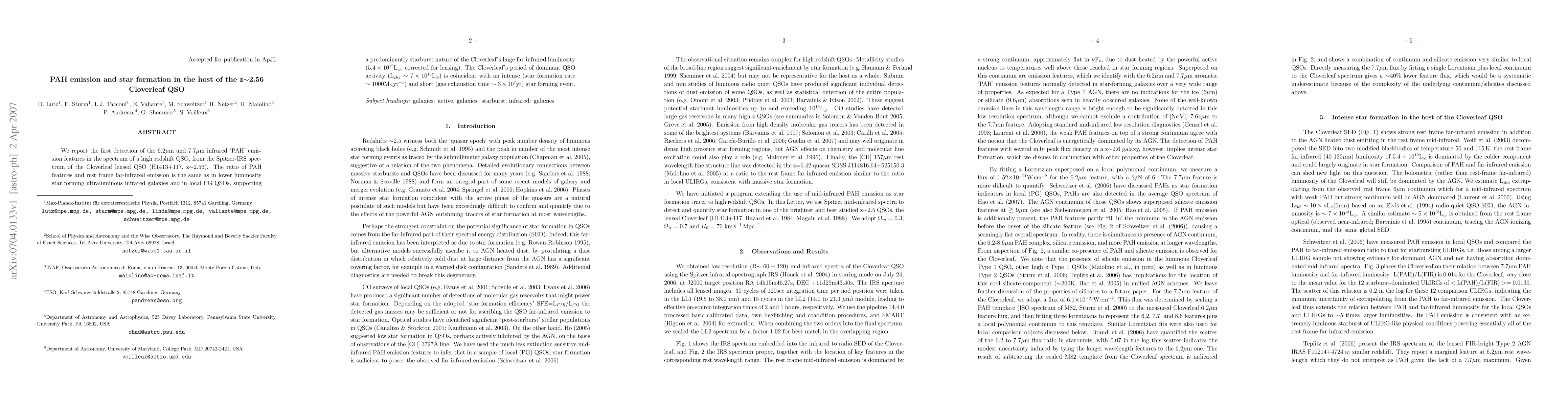 This paper reports the first detection of 6.2 and 7.7 micron PAH emission features in a high-redshift QSO, indicating a starburst nature. The Cloverleaf QSO exhibits intense star formation coinciding with its dominant active period.