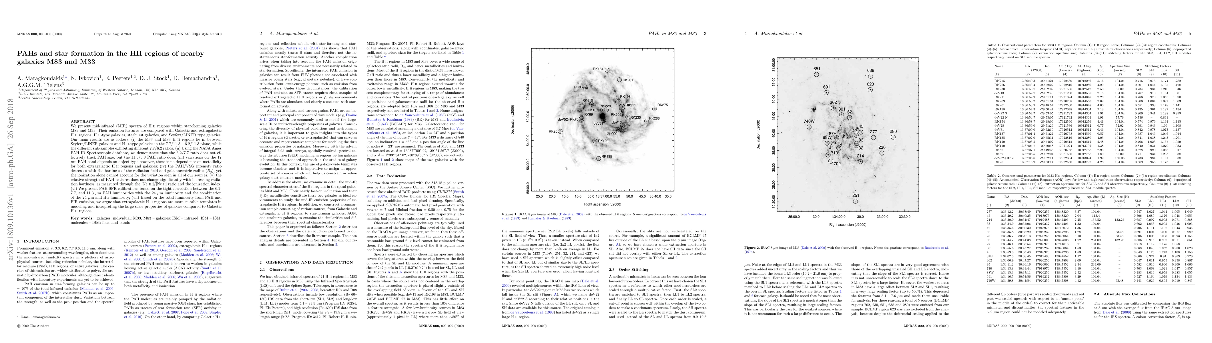 This study analyzes PAHs and star formation in HII regions of nearby galaxies M83 and M33, finding that extragalactic HII regions are more suitable templates for modeling galaxy properties than Galactic HII regions.