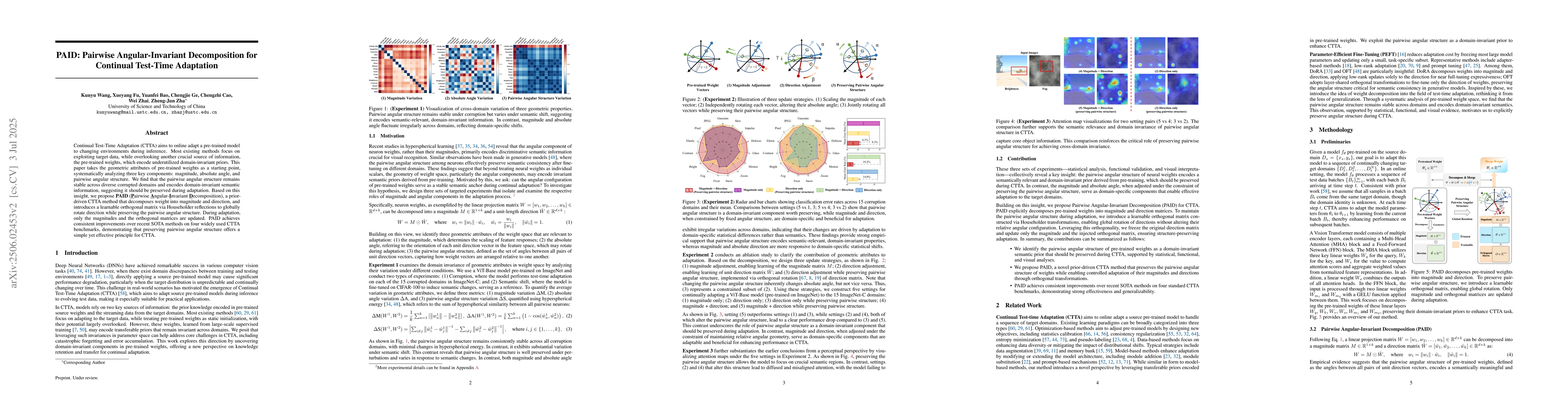 PAID proposes a novel CTTA method that preserves pairwise angular structure in pre-trained weights to adapt to changing environments, achieving consistent improvements over SOTA methods.