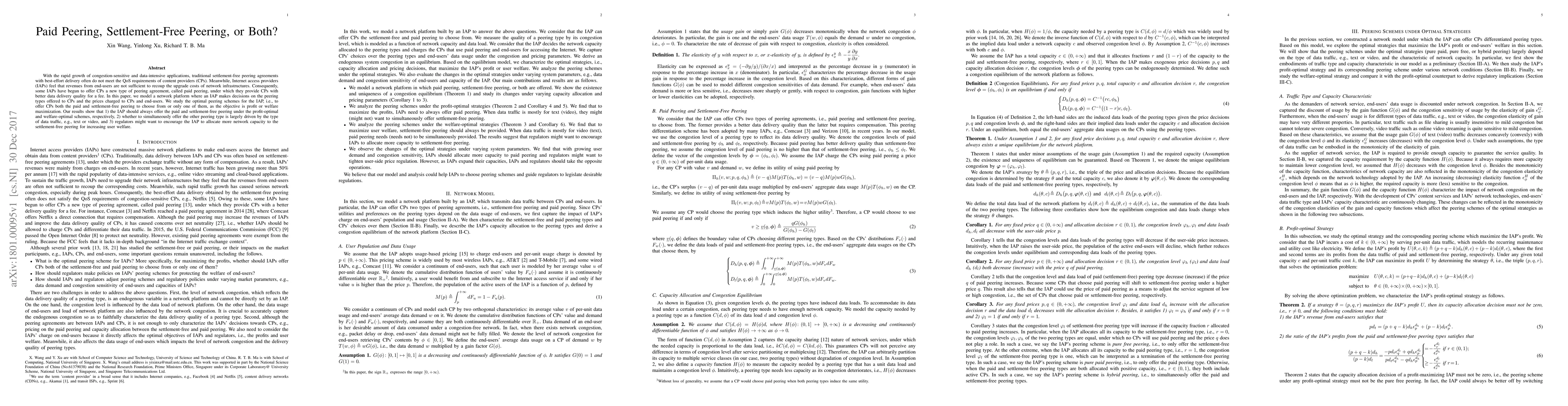 This paper models an Internet access provider's decision on offering paid and settlement-free peering to content providers, finding that profit-optimal strategies always include paid peering, while welfare-optimal strategies favor settlement-free peering. The choice of offering both depends on traffic type and regulatory influence.