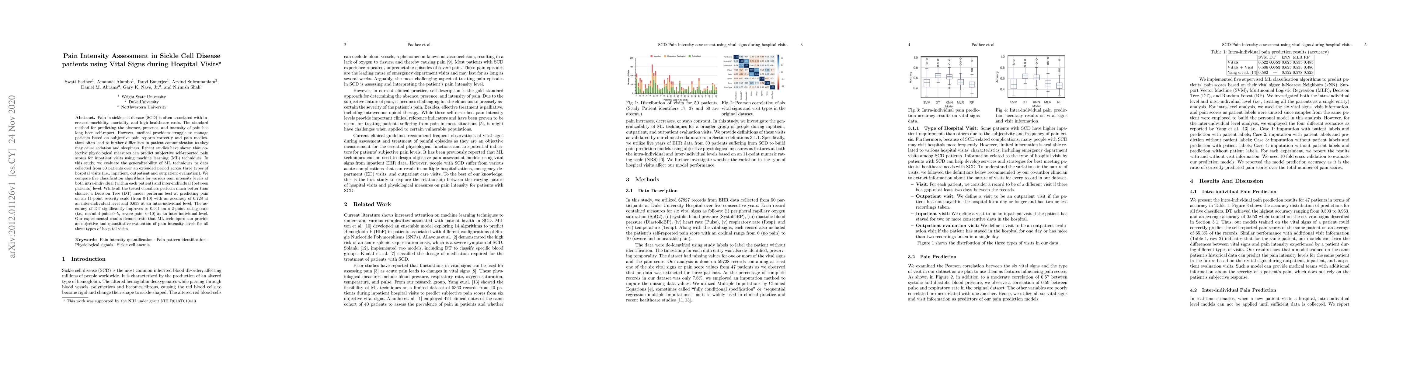 A machine learning study using vital signs data from 50 sickle cell disease patients found that a Decision Tree model can accurately predict pain intensity levels with high accuracy, providing an objective evaluation of pain for better patient management.