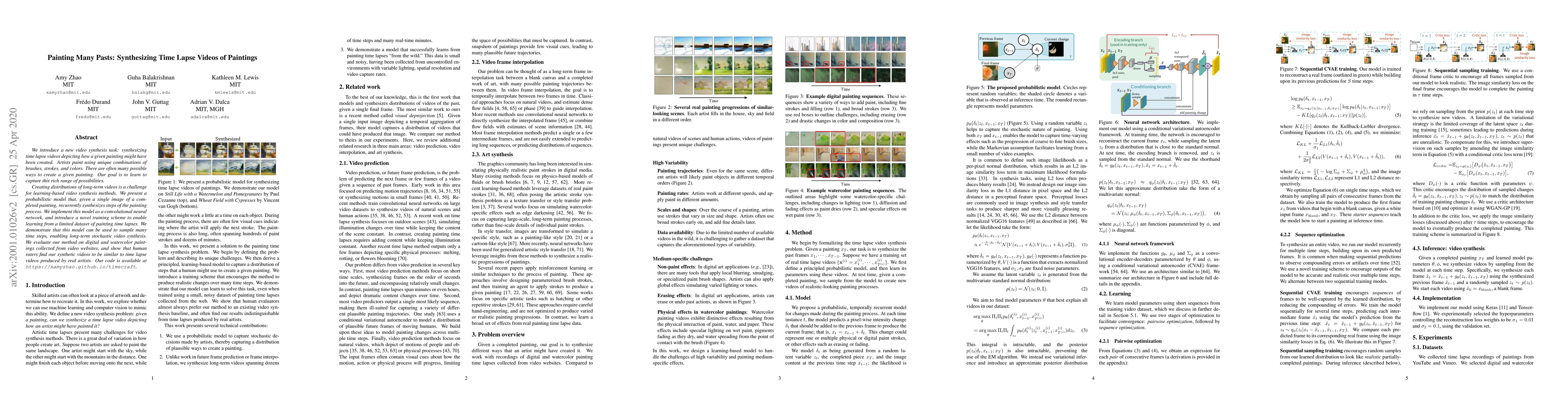 We introduce a new video synthesis task: synthesizing time lapse videos depicting how a given painting might have been created. Artists paint using unique combinations of brushes, strokes, and colors. There are often many possible ways to create a given painting. Our goal is to learn to capture this rich range of possibilities. Creating distributions of long-term videos is a challenge for learning-based video synthesis methods. We present a probabilistic model that, given a single image of a completed painting, recurrently synthesizes steps of the painting process. We implement this model as a convolutional neural network, and introduce a novel training scheme to enable learning from a limited dataset of painting time lapses. We demonstrate that this model can be used to sample many time steps, enabling long-term stochastic video synthesis. We evaluate our method on digital and watercolor paintings collected from video websites, and show that human raters find our synthetic videos to be similar to time lapse videos produced by real artists. Our code is available at https://xamyzhao.github.io/timecraft.