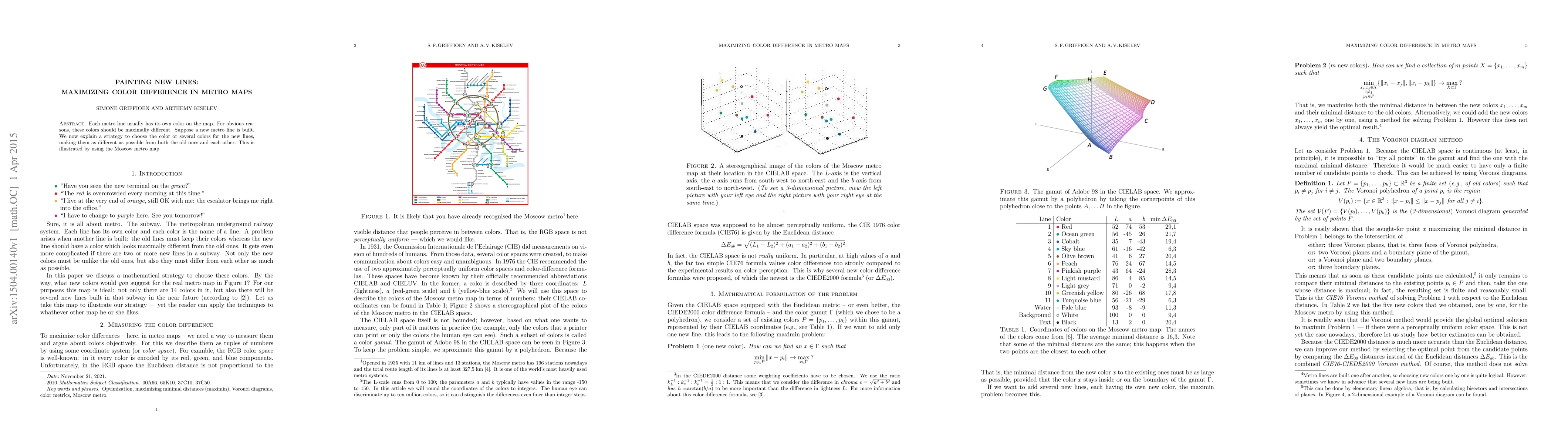 Each metro line usually has its own color on the map. For obvious reasons, these colors should be maximally different. Suppose a new metro line is built. We now explain a strategy to choose the color or several colors for the new lines, making them as different as possible from both the old ones and each other. This is illustrated by using the Moscow metro map.