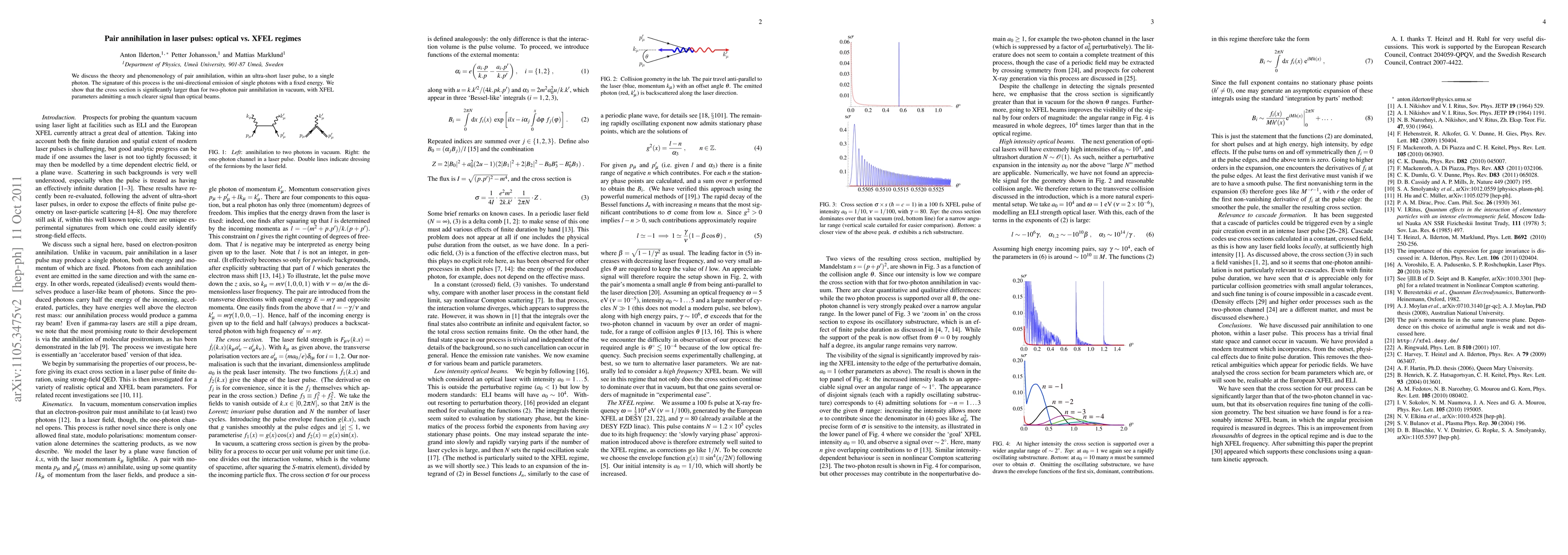 We discuss the theory and phenomenology of pair annihilation, within an ultra-short laser pulse, to a single photon. The signature of this process is the uni-directional emission of single photons with a fixed energy. We show that the cross section is significantly larger than for two-photon pair annihilation in vacuum, with XFEL parameters admitting a much clearer signal than optical beams.