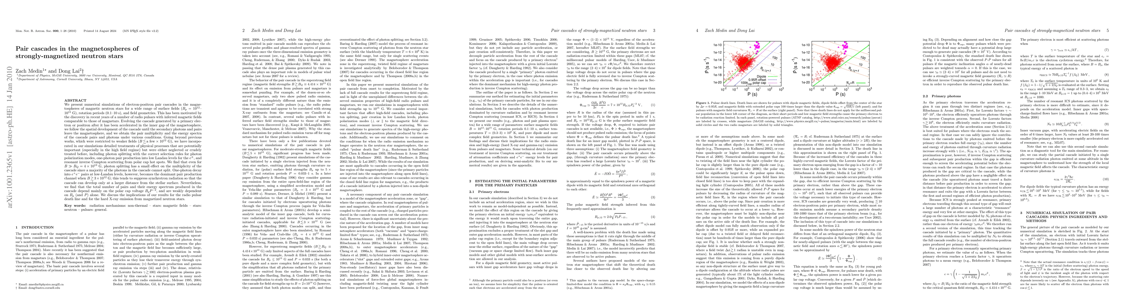 This paper presents detailed numerical simulations of electron-positron pair cascades in the magnetospheres of strongly-magnetized neutron stars, exploring a wide range of magnetic fields and rotation periods. The study incorporates advanced physical processes, including photon splitting and resonant inverse Compton scattering, to better understand the implications for radio pulsar death lines and hard X-ray emissions.