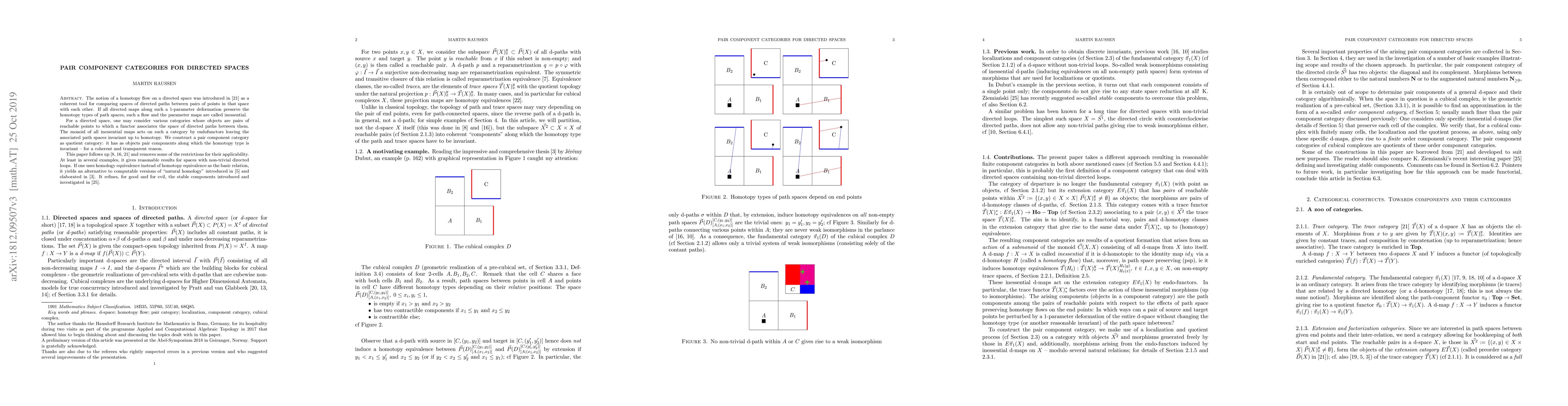 The notion of a homotopy flow on a directed space was introduced in \cite{Raussen:07} as a coherent tool for comparing spaces of directed paths between pairs of points in that space with each other. If all parameter directed maps preserve the homotopy type of path spaces, such a flow (and these parameter maps) are called inessential. For a directed space, one may consider various categories whose objects are pairs of reachable points and whose morphisms may be induced by these inessential d-maps. Localization with respect to subcategories with these inessential d-maps as morphisms can be combined with a path space functor into the homotopy category, the quotient pair component category has as objects pair components along which the homotopy type is invariant -- for a coherent and transparent reason. This paper follows up \cite{FGHR:04,GH:07,Raussen:07} and removes some of the restrictions for their applicability. If one uses homology equivalence instead of homotopy equivalence as the basic relation, it yields an alternative to computable versions of "natural homology" introduced in \cite{DGG:15} and elaborated in \cite{Dubut:17}. It refines, for good and for evil, the stable components introduced and investigated in \cite{Ziemianski:18}.