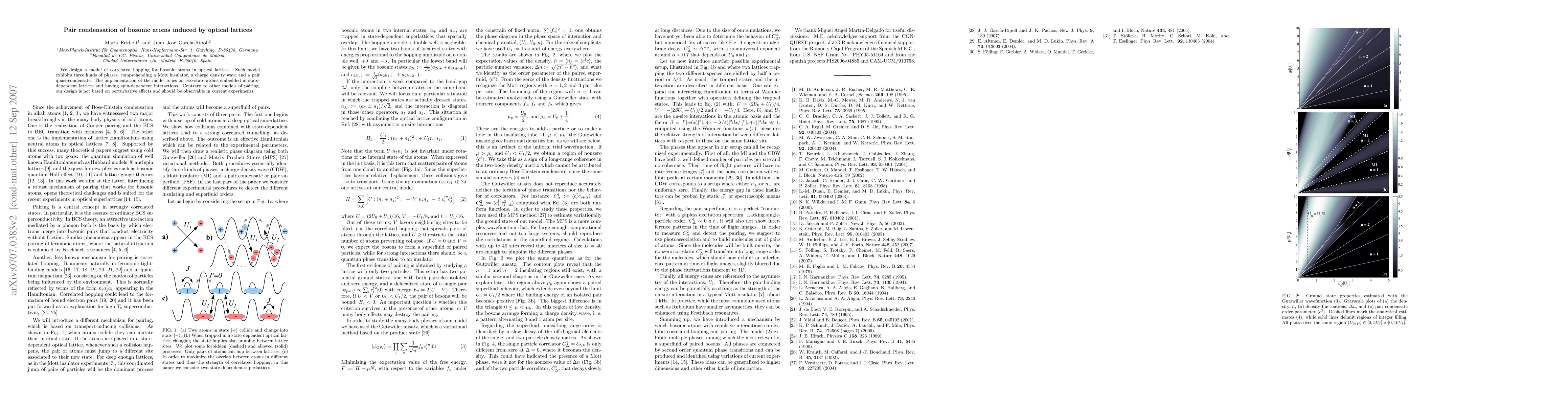 This research proposes a model for bosonic atoms in optical lattices that reveals three distinct phases: a Mott insulator, a charge density wave, and a pair quasi-condensate. Unlike other pairing models, this design is non-perturbative and feasible for current experimental observation.