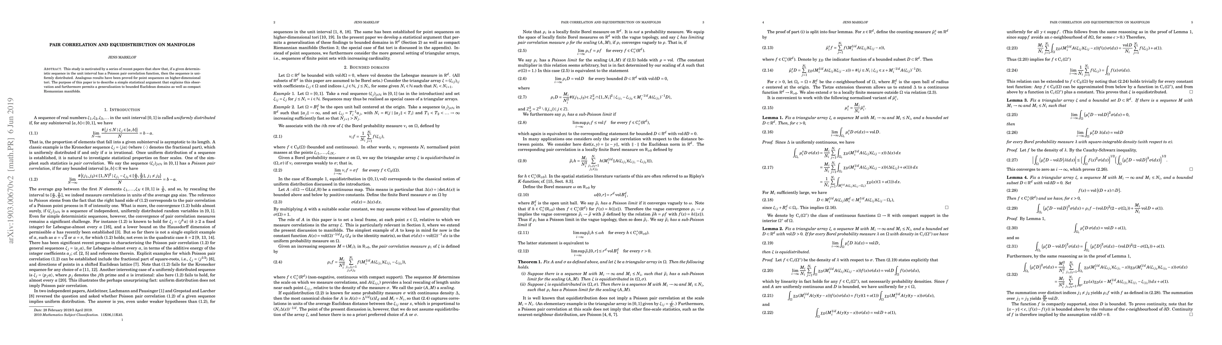 This study is motivated by a series of recent papers that show that, if a given deterministic sequence in the unit interval has a Poisson pair correlation function, then the sequence is uniformly distributed. Analogous results have been proved for point sequences on higher-dimensional tori. The purpose of this paper is to describe a simple statistical argument that explains this observation and furthermore permits a generalisation to bounded Euclidean domains as well as compact Riemannian manifolds.