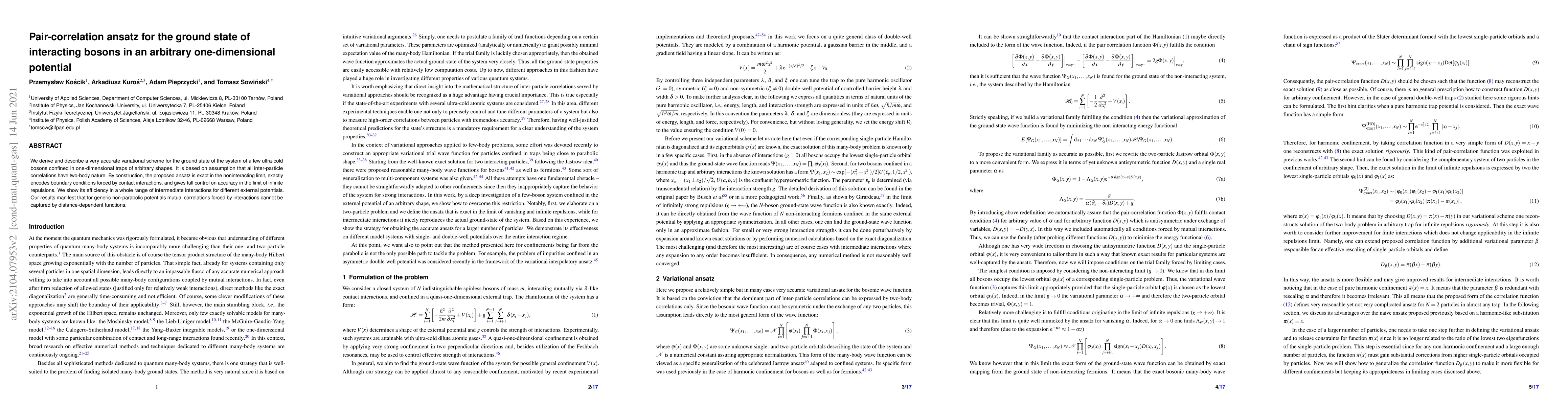 We derive and describe a very accurate variational scheme for the ground state of the system of a few ultra-cold bosons confined in one-dimensional traps of arbitrary shapes. It is based on assumption that all inter-particle correlations have two-body nature. By construction, the proposed ansatz is exact in the noninteracting limit, exactly encodes boundary conditions forced by contact interactions, and gives full control on accuracy in the limit of infinite repulsions. We show its efficiency in a whole range of intermediate interactions for different external potentials. Our results manifest that for generic non-parabolic potentials mutual correlations forced by interactions cannot be captured by distance-dependent functions.