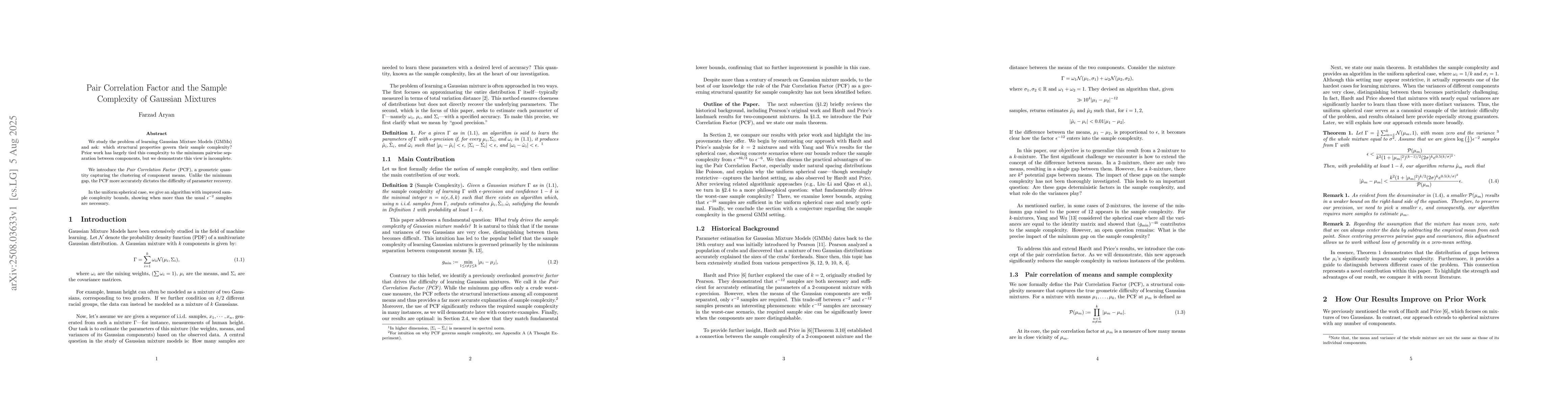 We study the problem of learning Gaussian Mixture Models (GMMs) and ask: which structural properties govern their sample complexity? Prior work has largely tied this complexity to the minimum pairwise separation between components, but we demonstrate this view is incomplete. We introduce the \emph{Pair Correlation Factor} (PCF), a geometric quantity capturing the clustering of component means. Unlike the minimum gap, the PCF more accurately dictates the difficulty of parameter recovery. In the uniform spherical case, we give an algorithm with improved sample complexity bounds, showing when more than the usual $\epsilon^{-2}$ samples are necessary.