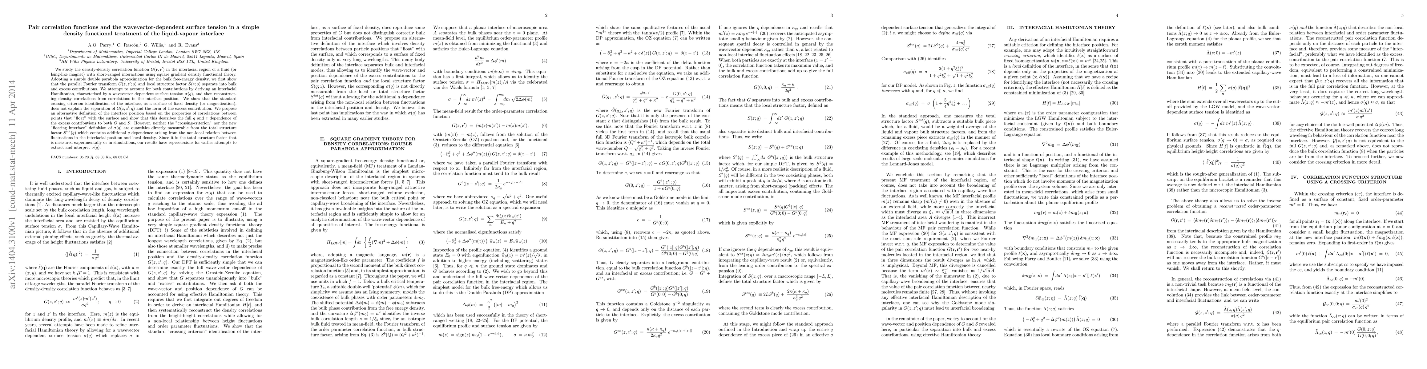This paper investigates the density-density correlation function in the liquid-vapour interface using density functional theory, proposing a wavevector-dependent surface tension. It finds that neither the traditional nor a newly defined interface position can be directly measured from the total structure factor, impacting interpretations of surface tension.