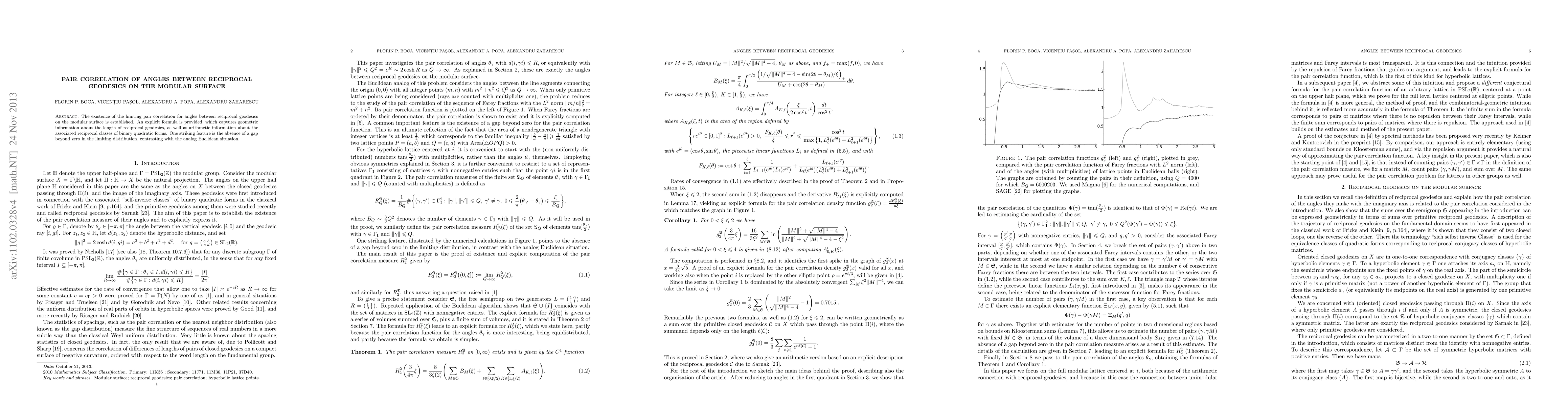 The paper establishes the existence of a limiting pair correlation for angles between reciprocal geodesics on the modular surface, providing an explicit formula that integrates geometric and arithmetic information. Notably, the distribution lacks a gap beyond zero, differing from the Euclidean analog.