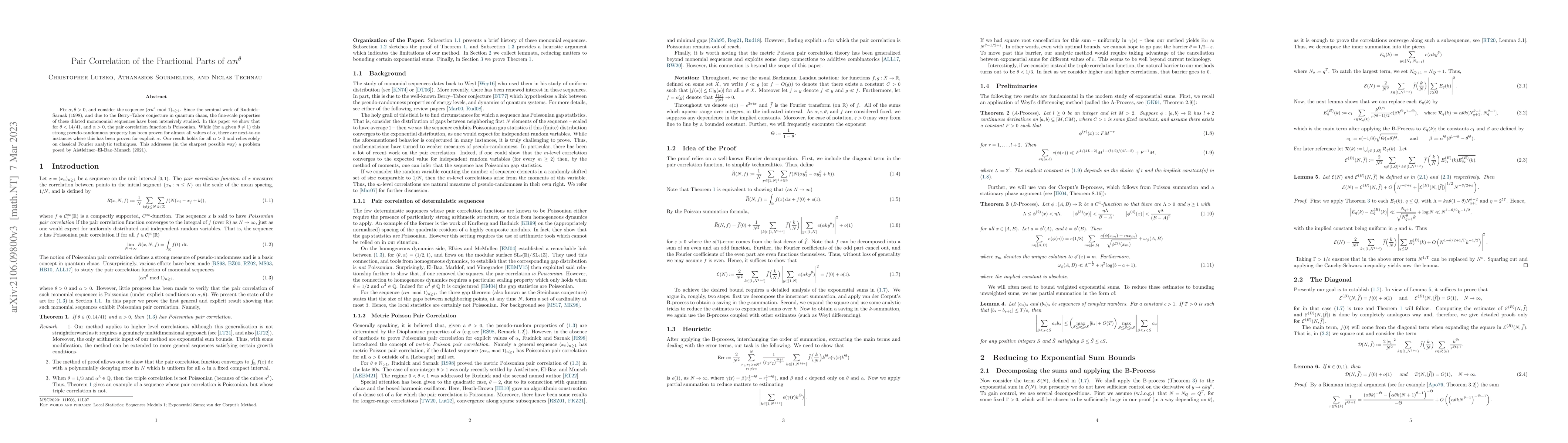 This paper demonstrates that for $\theta \le 1/3$ and $\alpha > 0$, the pair correlation function of the sequence $(\alpha n^{\theta} \mod 1)_{n\ge 1}$ is Poissonian, proving strong pseudo-randomness for all $\alpha$ using classical Fourier analysis. This resolves a specific question regarding explicit values of $\alpha$ raised by Aistleitner--El-Baz--Munsch (2021).